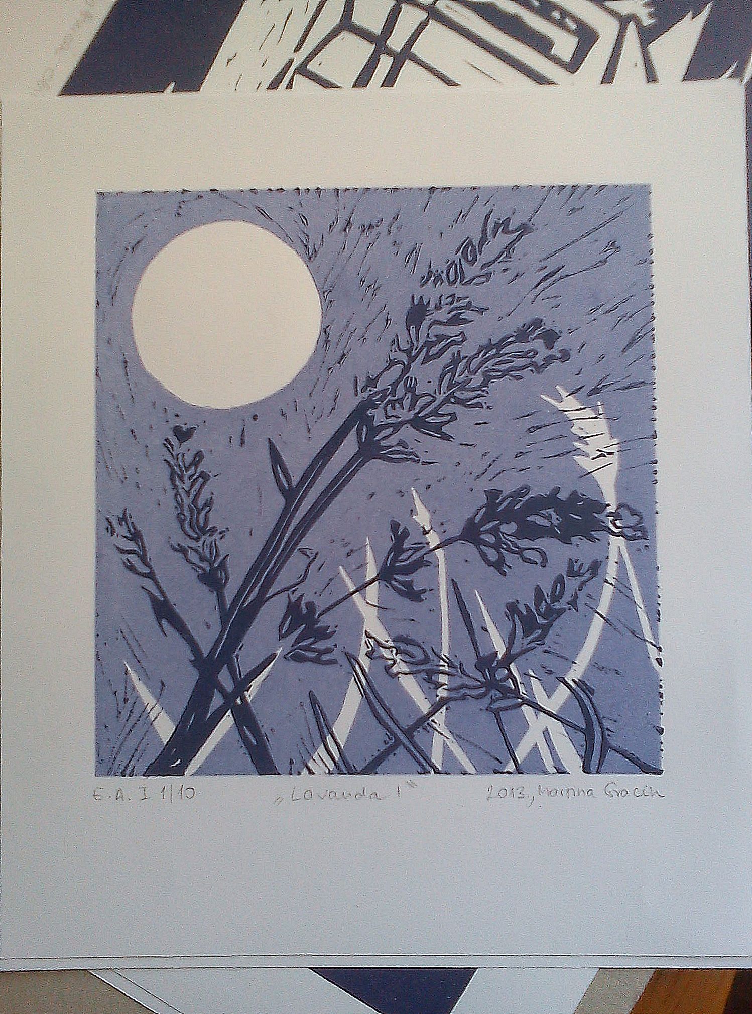 Ovaj puta sam ga otiskivala s dvije ploče, što me ponukalo da se poigram s varijacijama u boji. Slikari su često pribjegavali tome (primjerice Van Gogh), grafičarima je to još lakše :-)