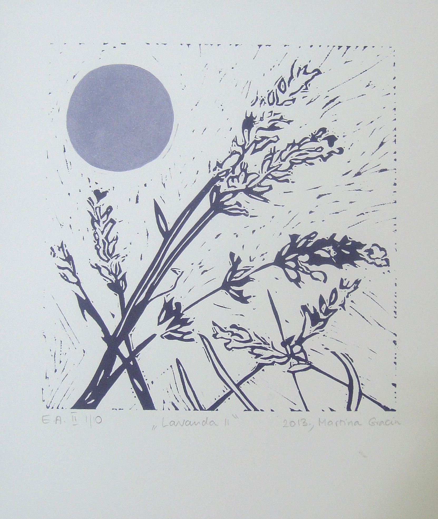Ljetne inspiracije dovele su do pauze od instrumenata…i do ljubičaste boje. Već mi je dugo omiljena, no do sada nikako nije pronašla svoje mjesto u grafikama, premda je u stanu ( i u ormaru) imam na pretek. Manji linač u dva tona.