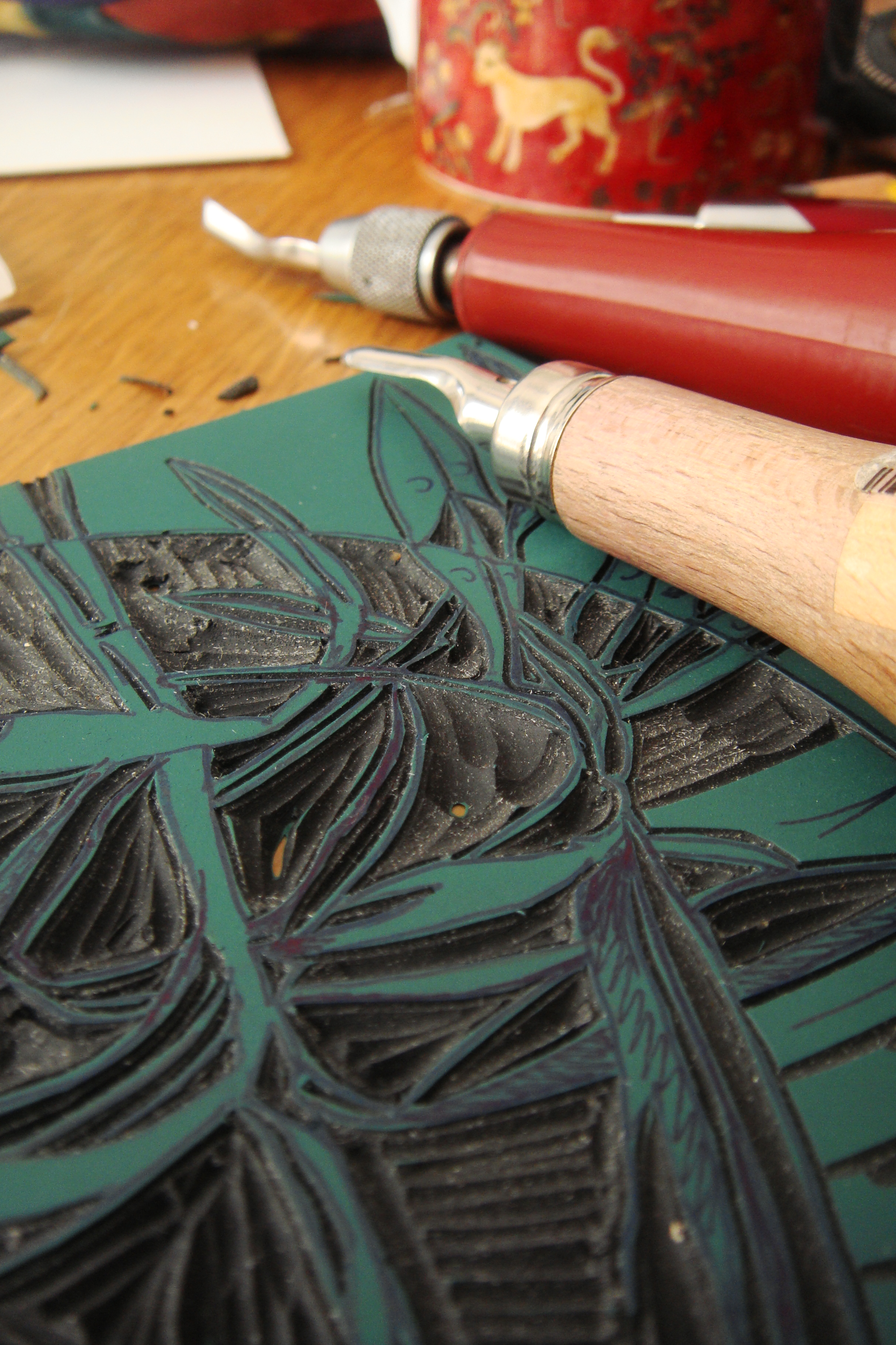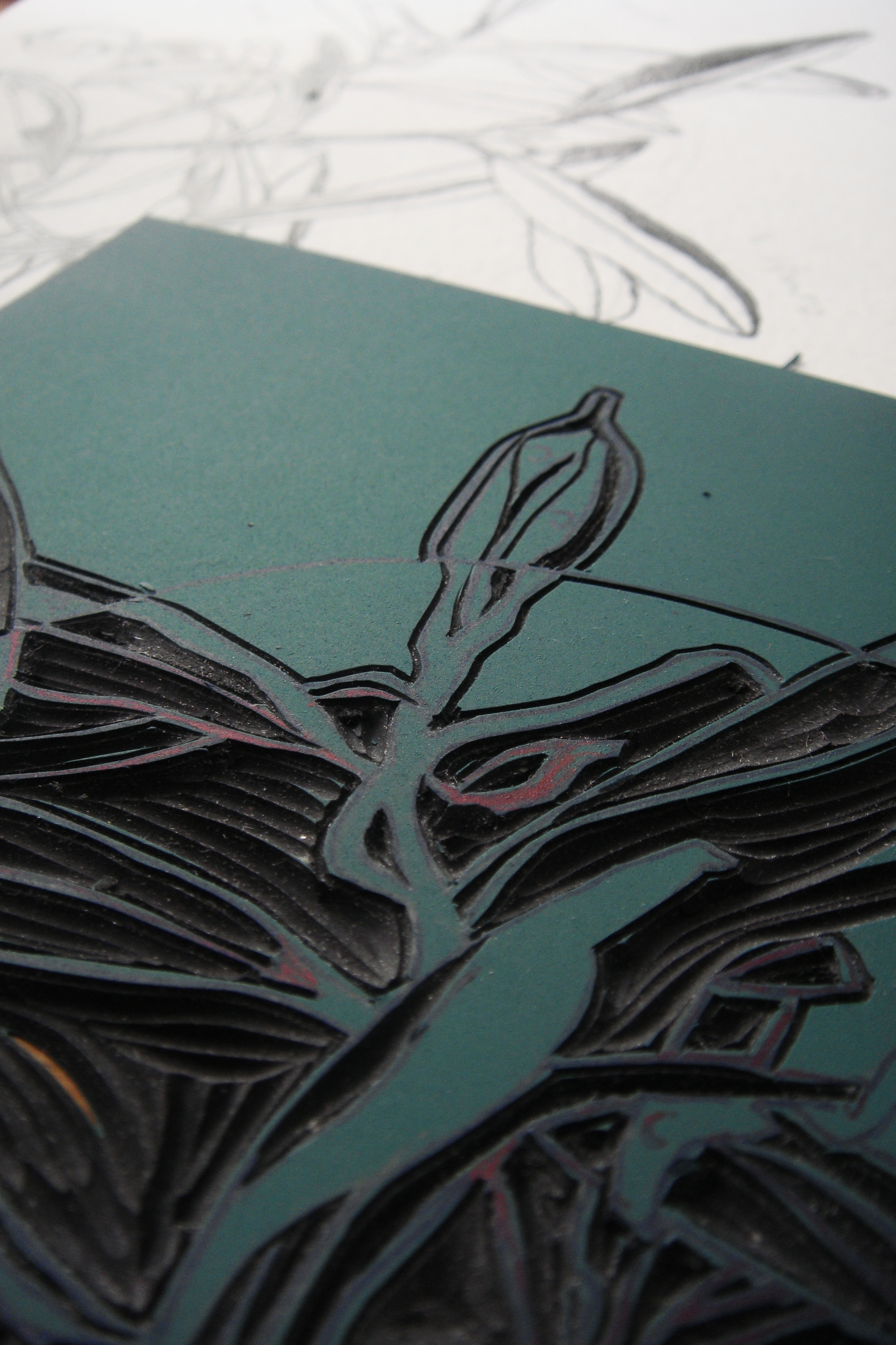 Uz rad je trebalo priložiti i artist statement kako bi gledatelj mogao shvatiti poveznicu. Kao inicijal za taj kratak tekst stavila sam umanjenu verziju novog linoreza.