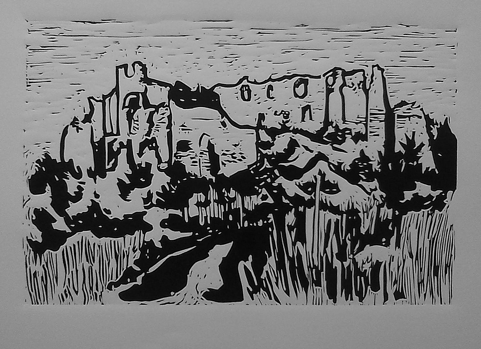 Nekoliko vještih ruku odabranih omladinaca pomoglo mi je da svoju verziju Ružice naslikam na zid. Gledajući zidnu sliku u nastajanju, prijatelj mi je rekao da ga podsjeća na jedan od mojih linoreza (E, Martina, znaš na kaj me podsjeća ovaj zid?…). Znaaaam- tada sam već bila započela rad na linorezu. Naime, moja verzija Ružice već je u skici bila- linorezačka….