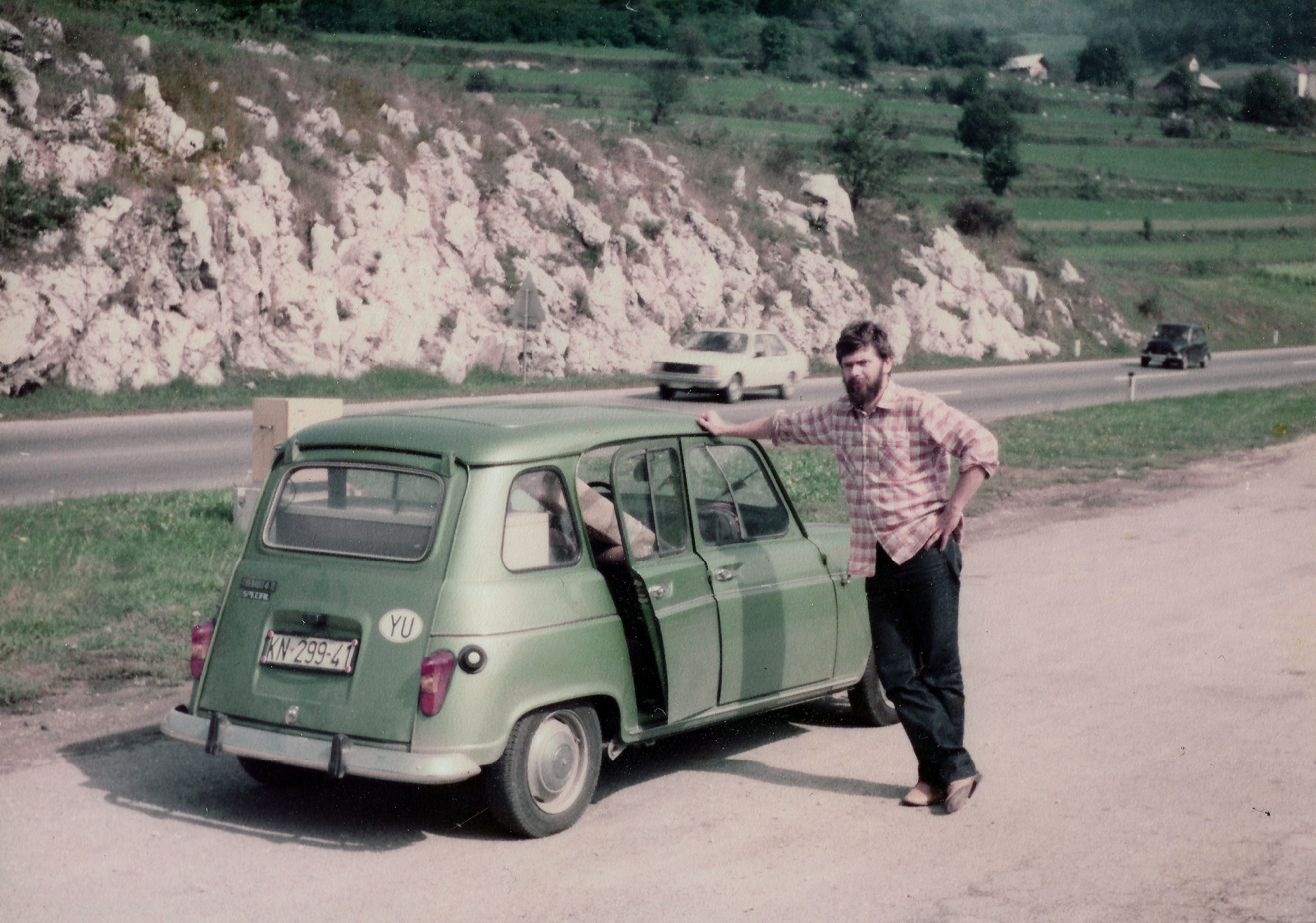 Subotica. Ovaj linorez prikazuje scenu koju sam vidjela prilikom našeg putovanja Suboticu. Bio je sunčan dan i sjela sam na Trg Slobode dok su ostali obilazili Gradsku kuću. Ona se na linorezu vidi u pozadini, a u prvom planu je auto koji se tu našao pri ozbiljnom poslu neke dostave. To je bila takozvana „četvorka”, auto moje mladosti. Ovakvih smo autića imali nekoliko u našoj obitelji- moji su roditelji imali bijeli, pa zeleni… Taj je i na ovoj fotografiji mog oca iz ranih osamdesetih. Danas se takav auto, kod nas u Hrvatskoj, eventualno može vidjeti na otocima. U njemu, često neregistriranom, netko juri prema svom masliniku. Uzimajući sve to u obzir, nije niti čudo da mi je, taj dan na trgu, „četvorka” pridonijela romantici prizora.