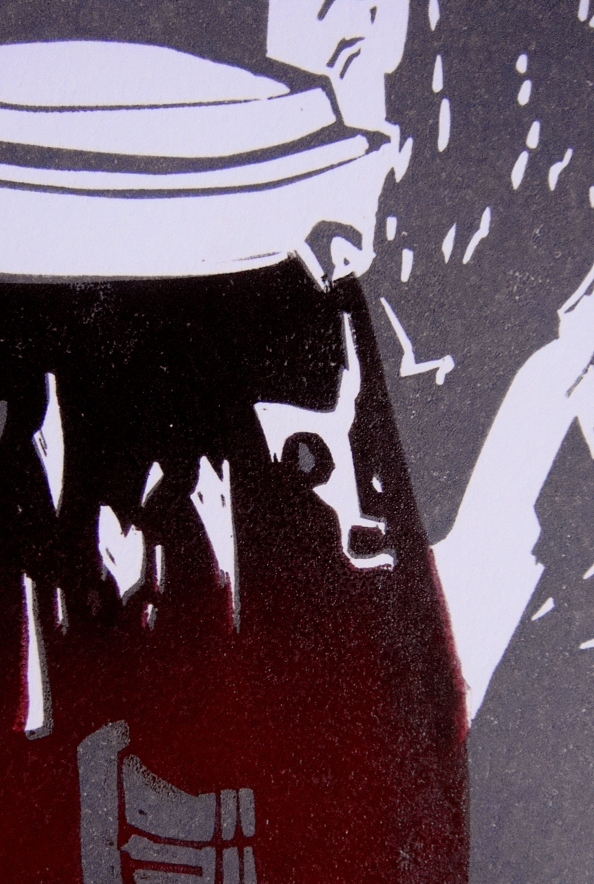 Čitavo mi je ljeto bilo u znaku koloriranja otisaka. I jesen se nastavila u istom tonu. Možda je bolje reći, u istom stilu. Jer su tonovi, kojima sam kolorirala otiske, postali jesenski. I moj odabir kombinacija boja često je bio rezultat uočavanja promjena na jesenskom lišću. Tako je i ovaj zamućeni crveni list (u prvom planu fotografije) poslužio kao inspiracija za koloriranje puno manjih listića na linorezu.