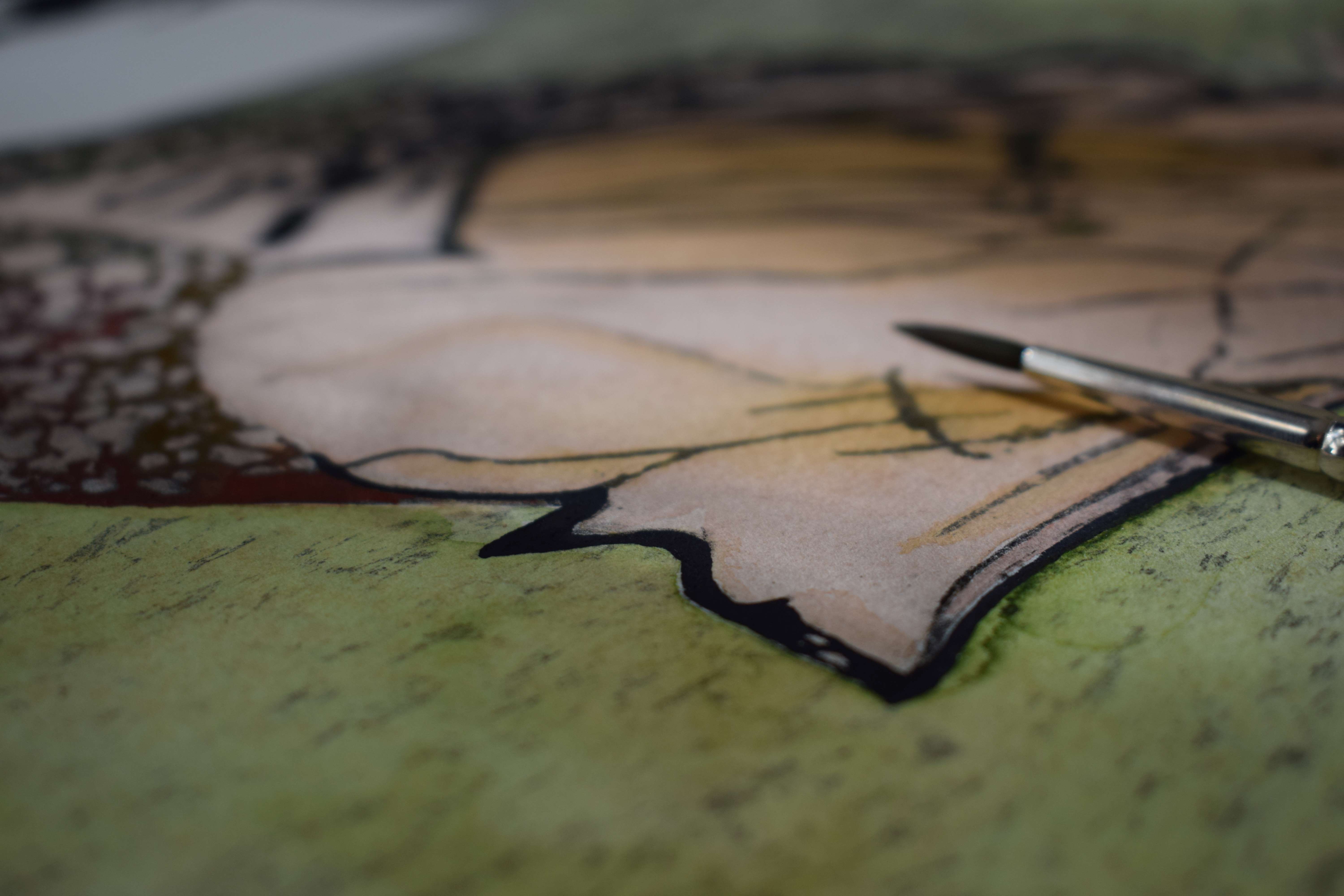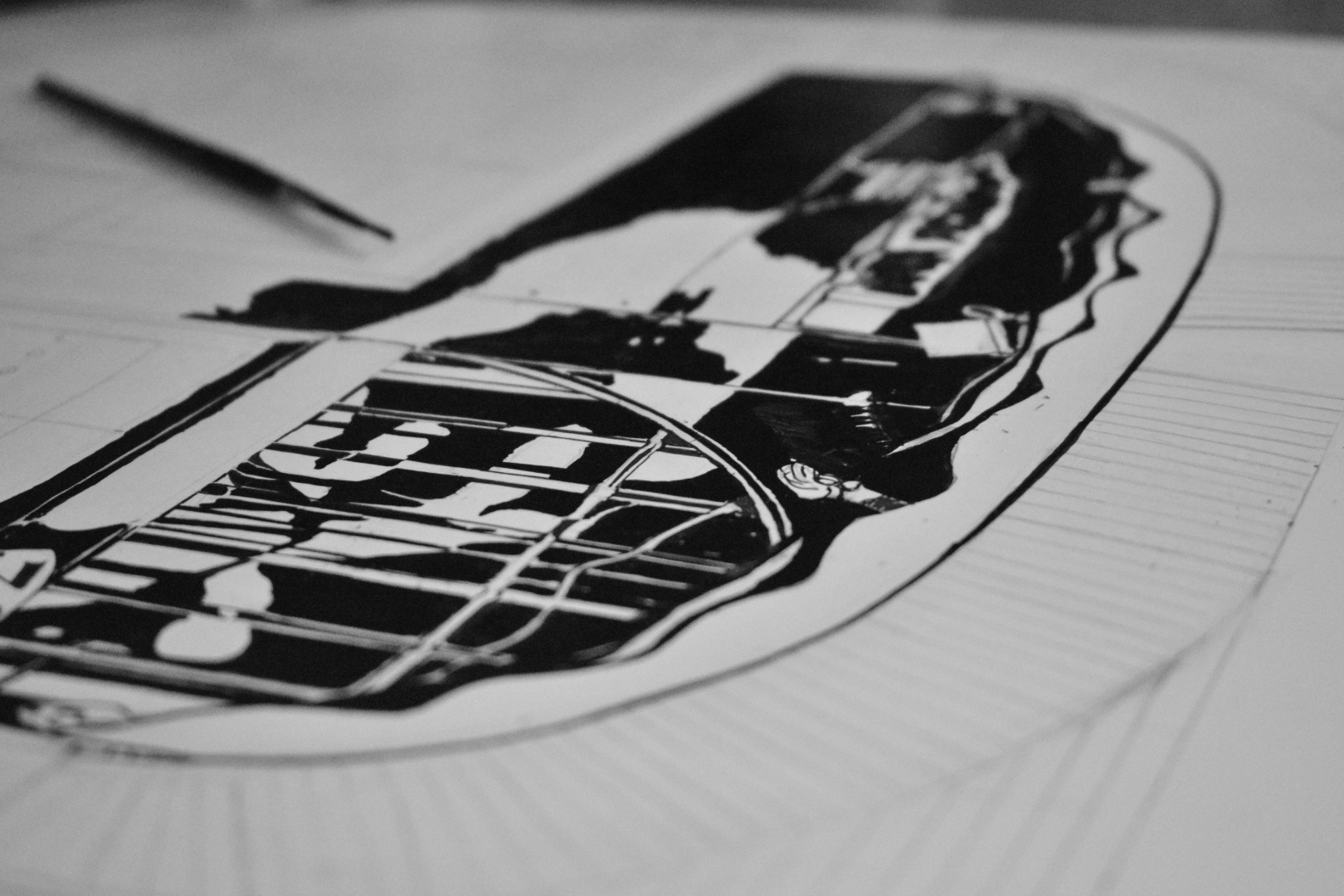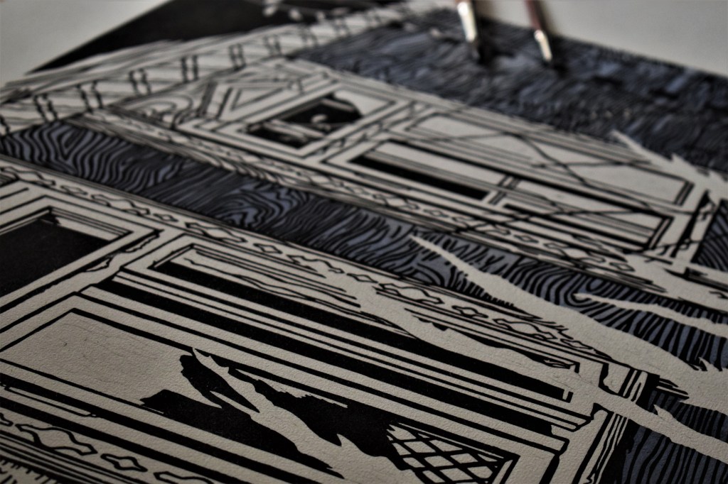 Nakon mnogih preinaka i rada na skici, krenula sam na sljedeći korak, prenošenje crteža na linoleum pomoću paus papira.