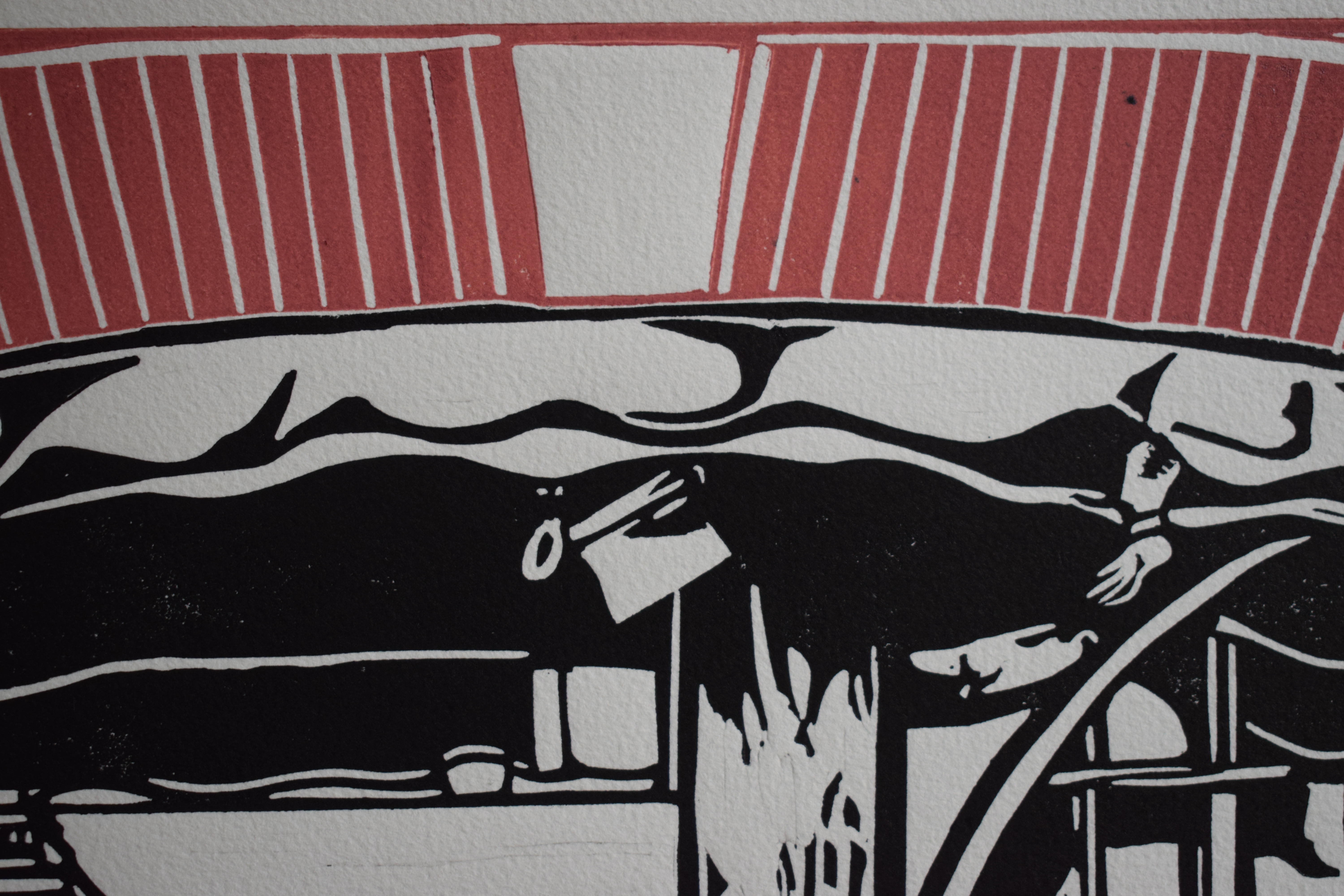 Slijede kratki prikazi radova s izložbe. Više o procesu izrade svakog pojedinog linoreza možete pročitati klikom na poveznicu koja se nalazi na kraju svakog odlomka.