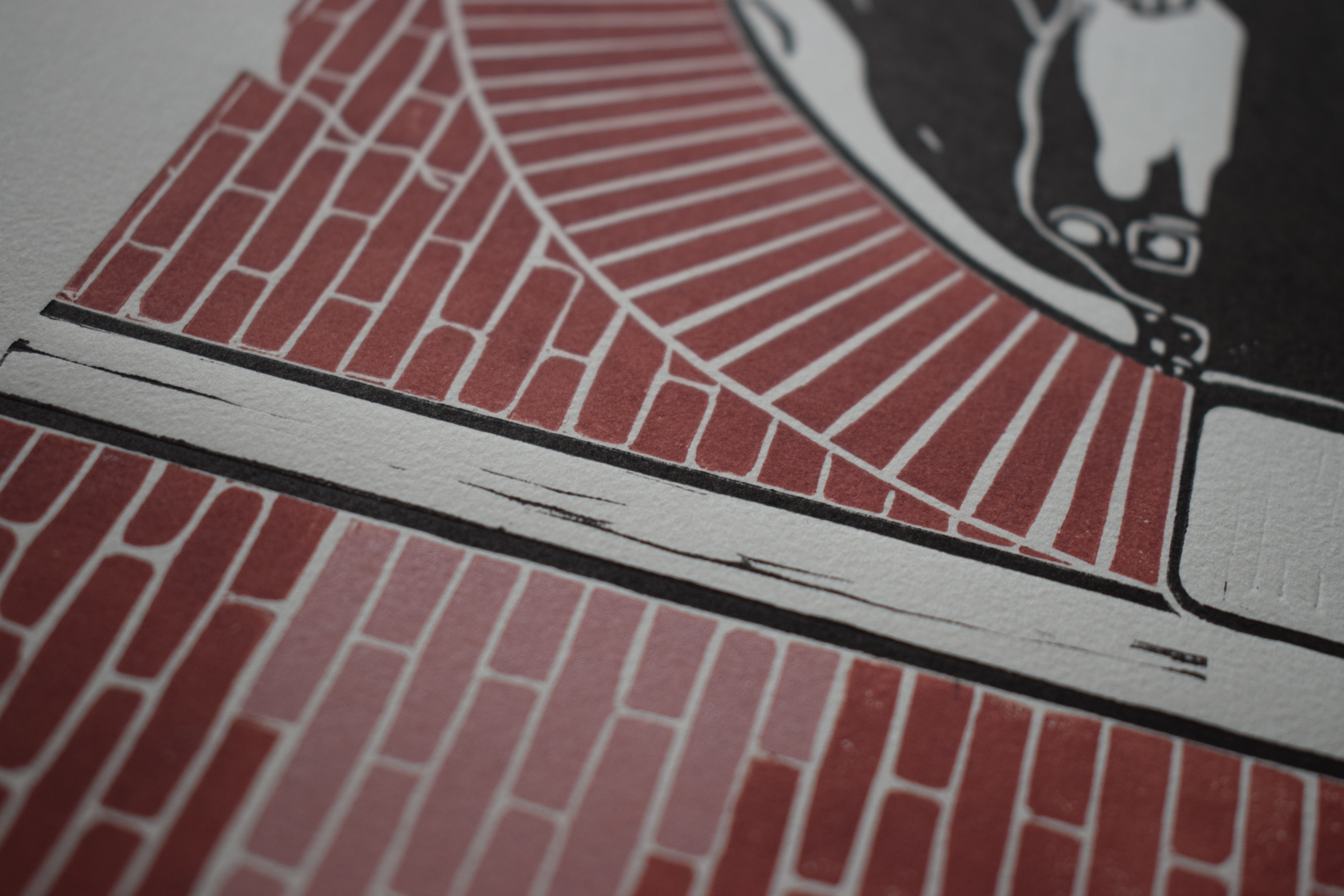 Najprije sam ponovo otisnula svoj linorez Oxford koji sam napravila još 2014. godine. Pri otiskivanju grafike nužno je obratiti pažnju na svaki detalj linoreza. Najprije treba provjeriti je li na svaki dio ploče dobro nanesena boja, a nakon otiskivanja, je su li svi dijelovi dobro otisnuti. To je vjerojatno jedan od razloga zašto mi je uvijek zanimljivo ponovo otiskivati linoreze koje sam nekad davno izdubila. A kako rijetko otiskujem cijelu ediciju odjednom, često se na ovaj način imam priliku vratiti ranijim radovima.