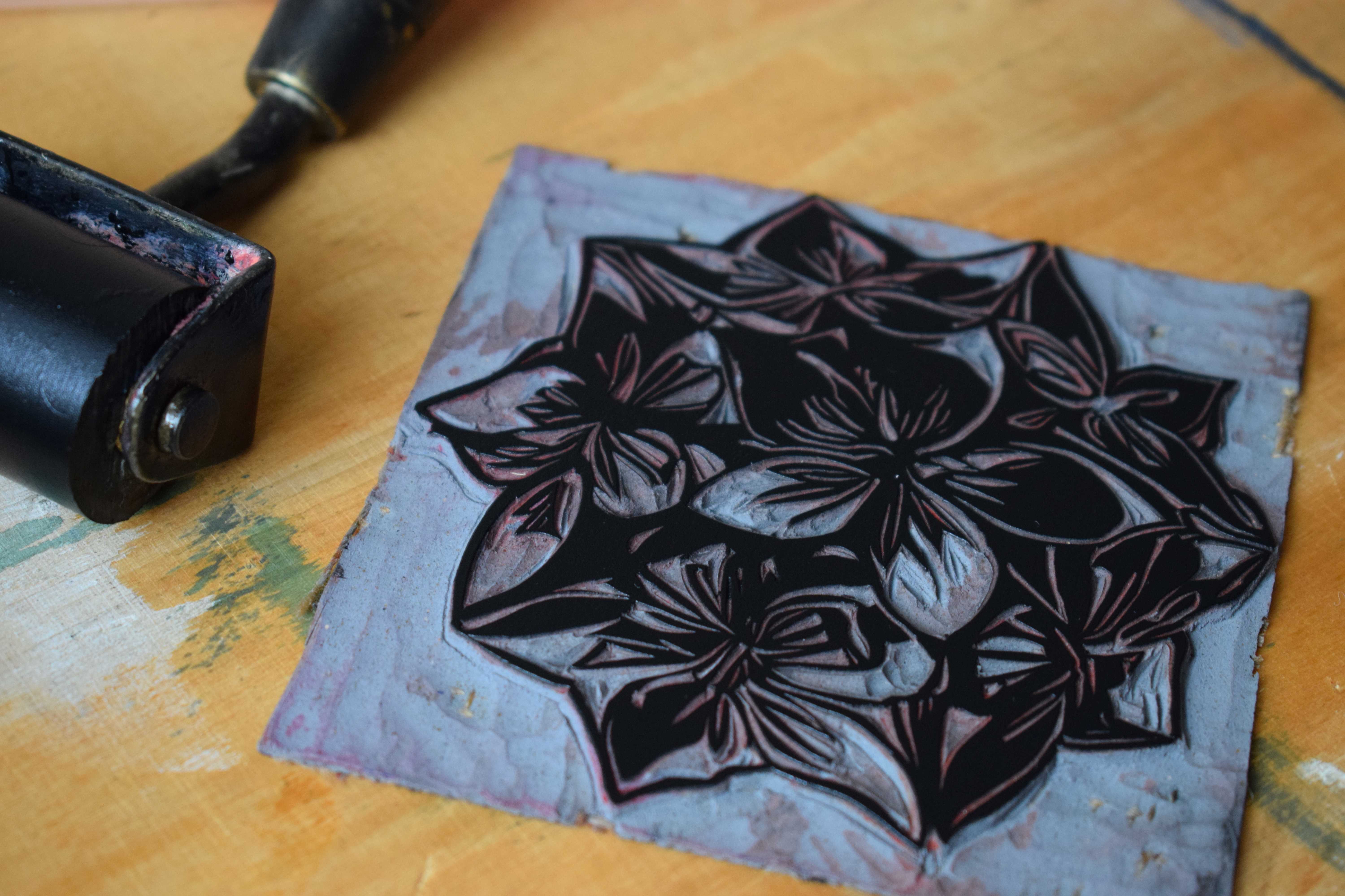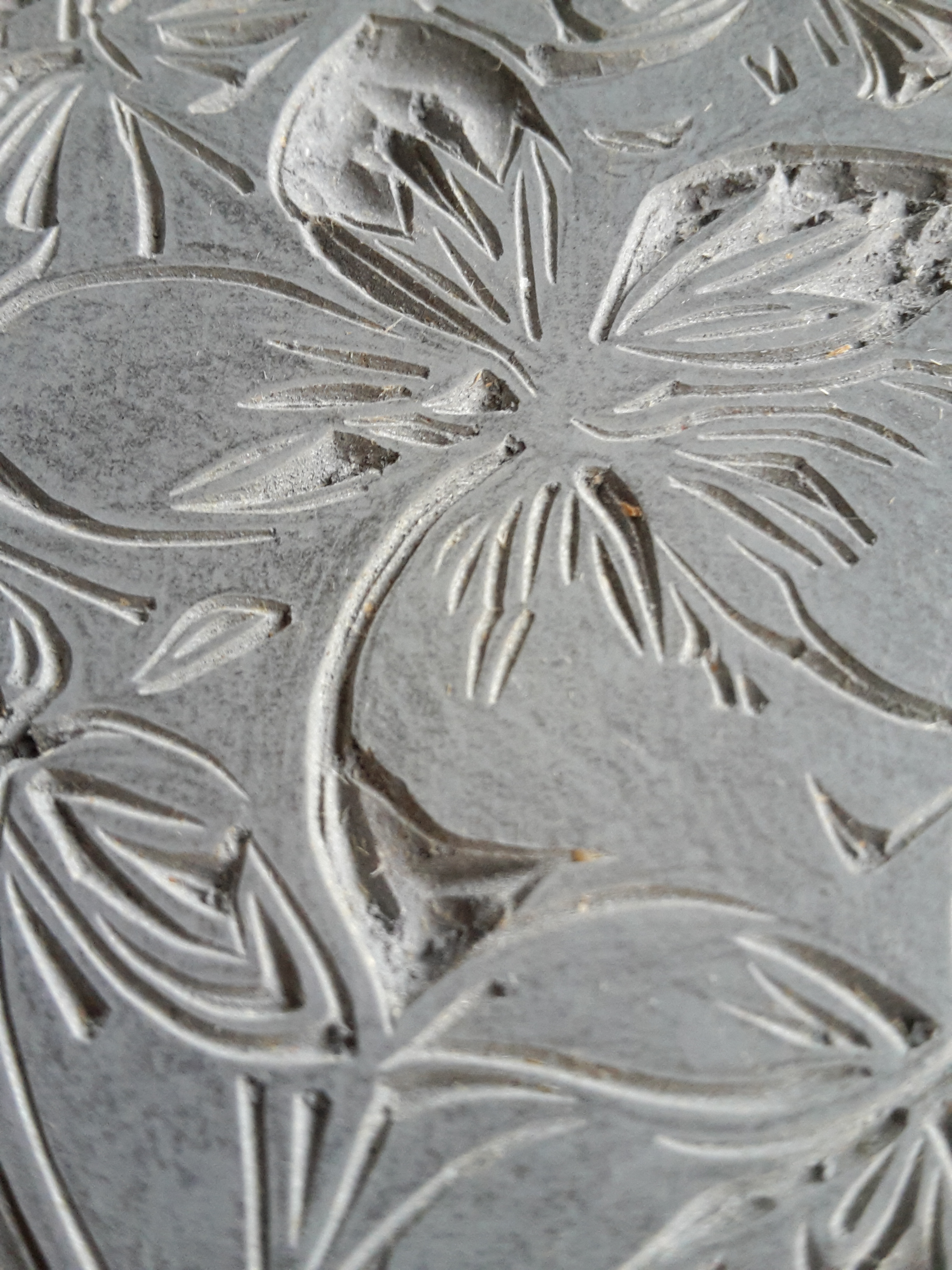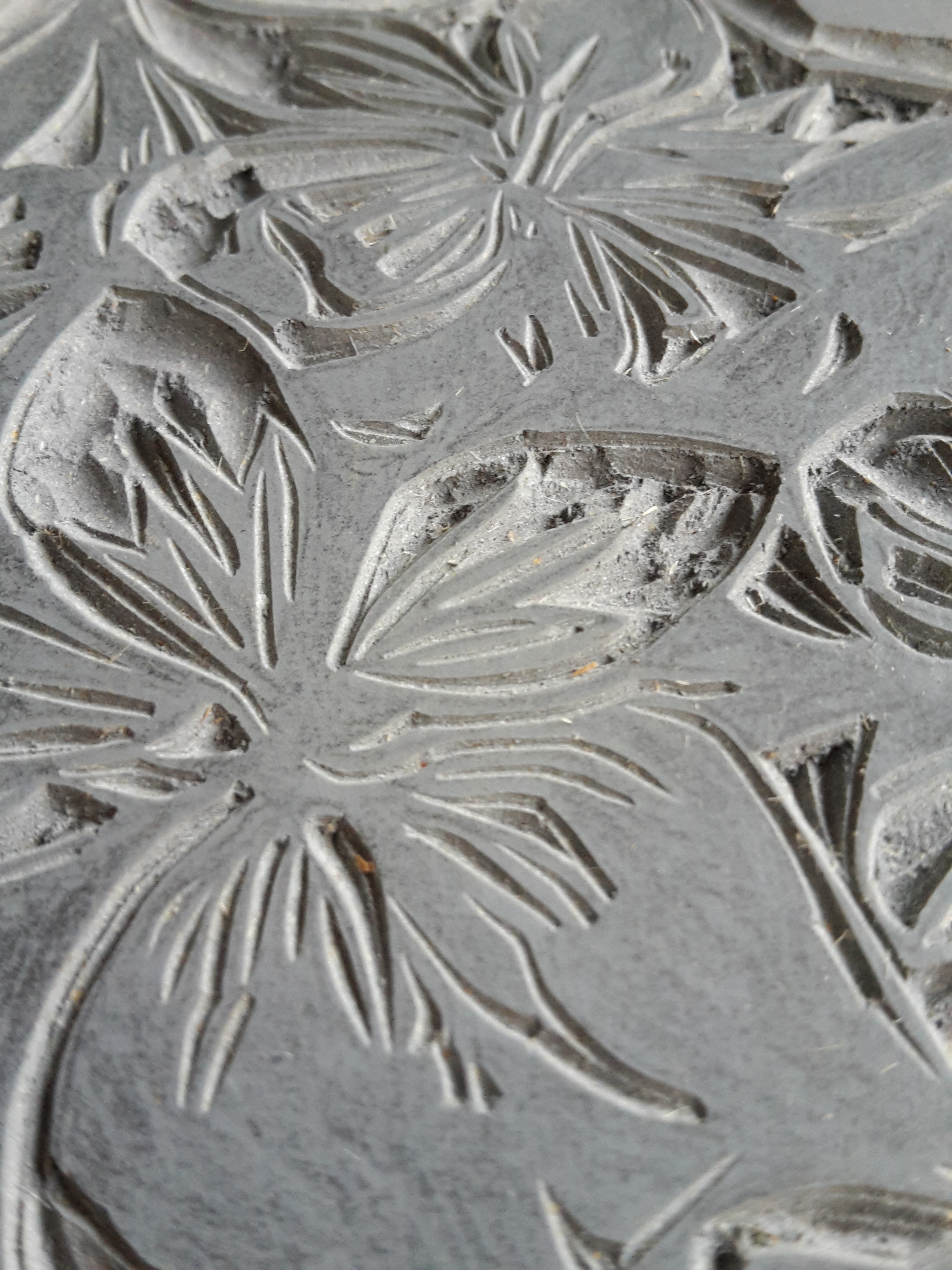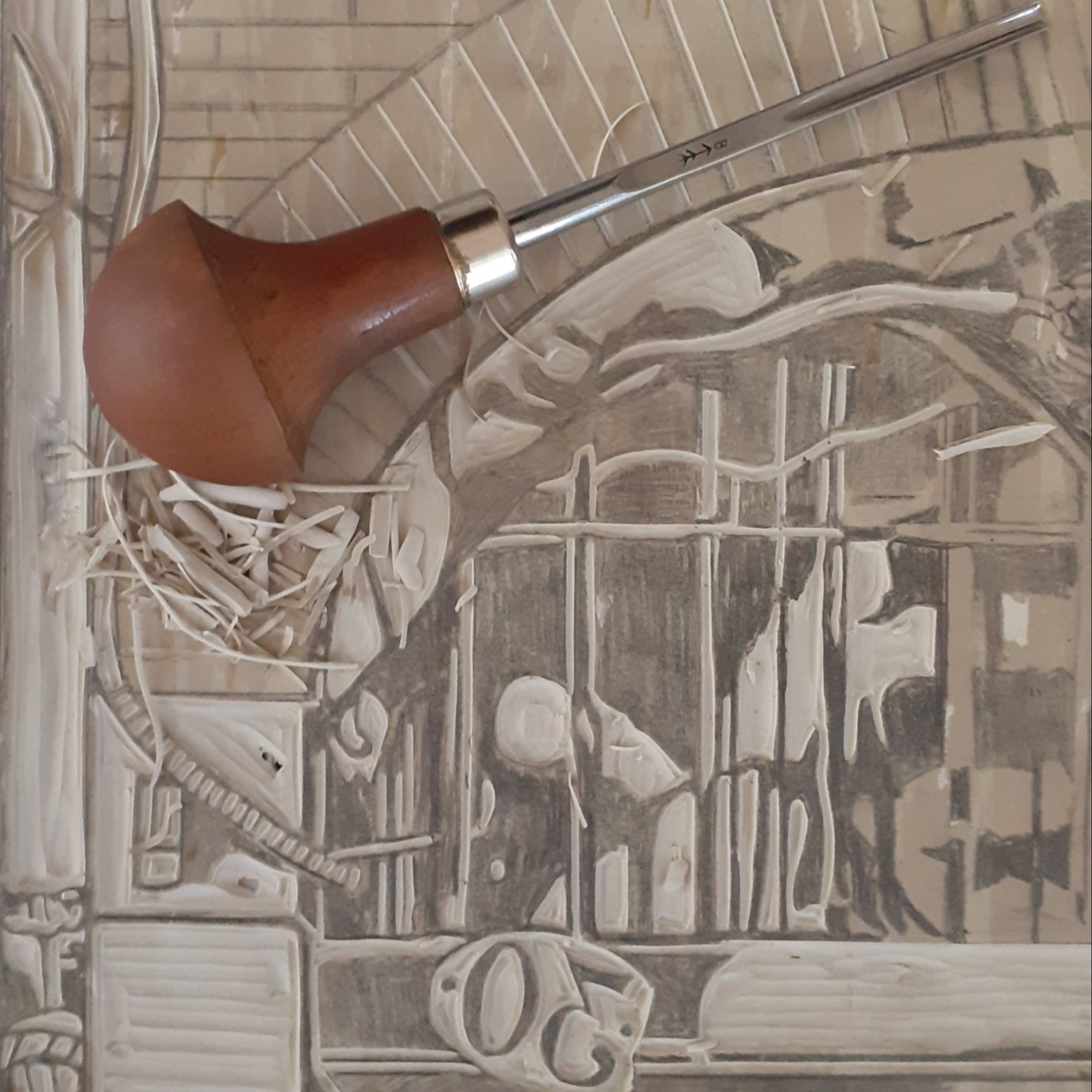 Linoleum koji sam ovaj puta koristila bio je Armstrongov battleship. Za prethodna dva linoreza koristila sam neku drugu vrstu jer, u tom periodu, battleship nisam mogla nigdje nabaviti. Ali, srećom, ljudi iz trgovine gdje ga inače kupujem pronašli su još jednu rolu na nekom ormaru u svom skladištu. Armstrongov battleship se teže dubi u odnosu na zamjenske materijale, ali mi je svejedno omiljen.