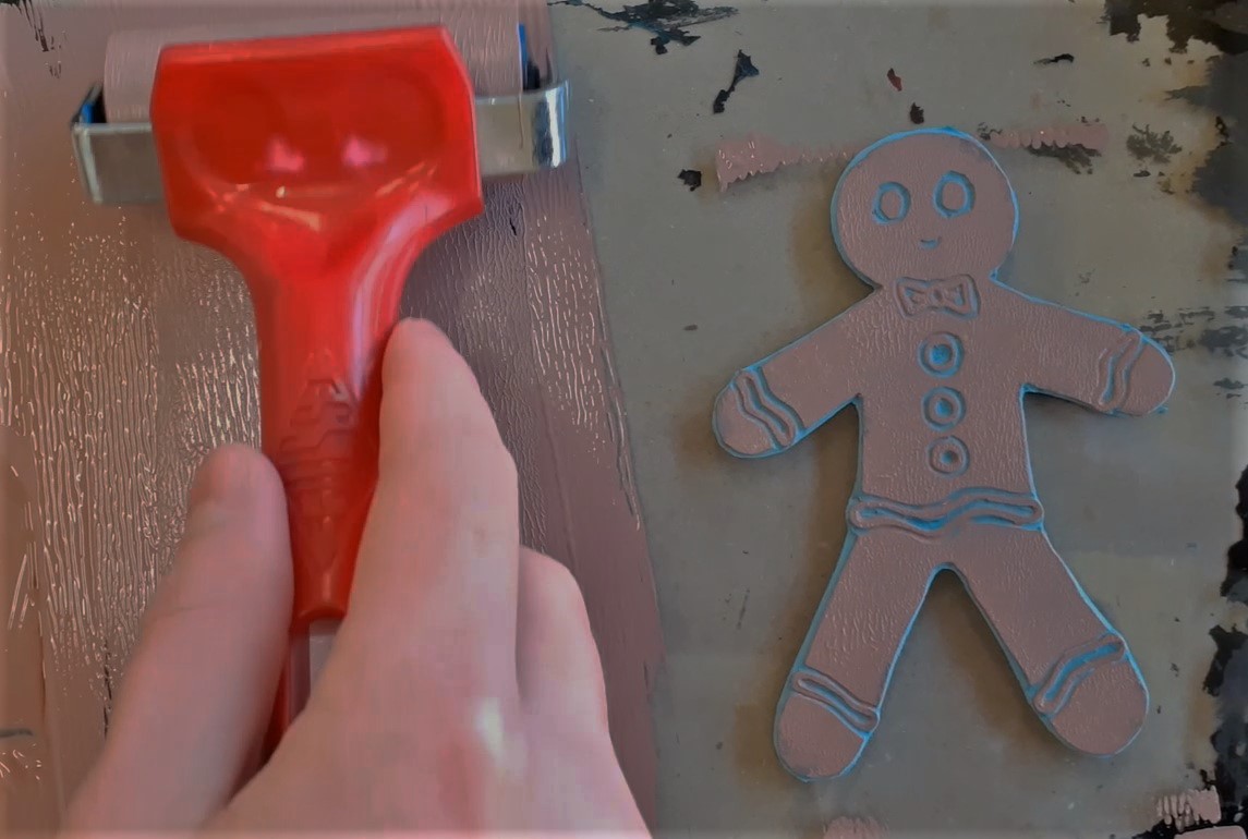 Zimski pejzaži i gingerbread man izdubljeni su školskim nožićima u mekanim pločama.