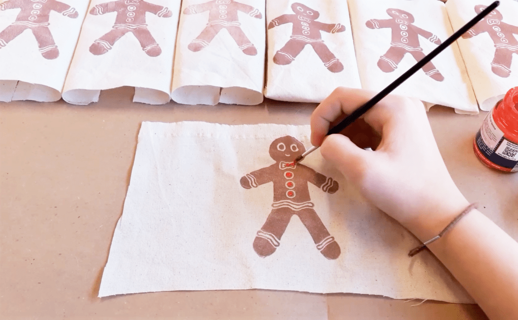 Nakon otiskivanja, radovi su doslikani bojama za tekstil i sašiveni u ukrase.