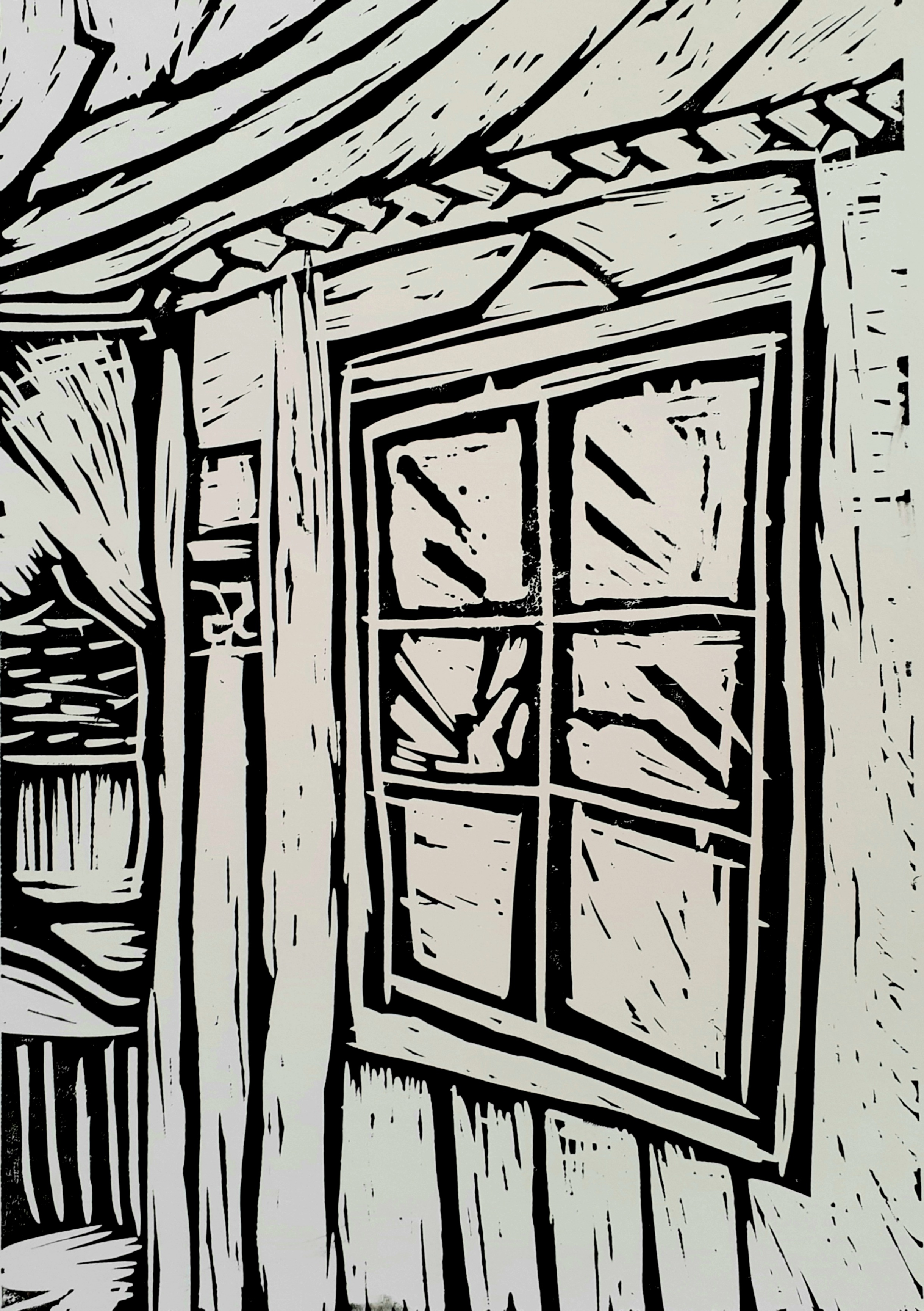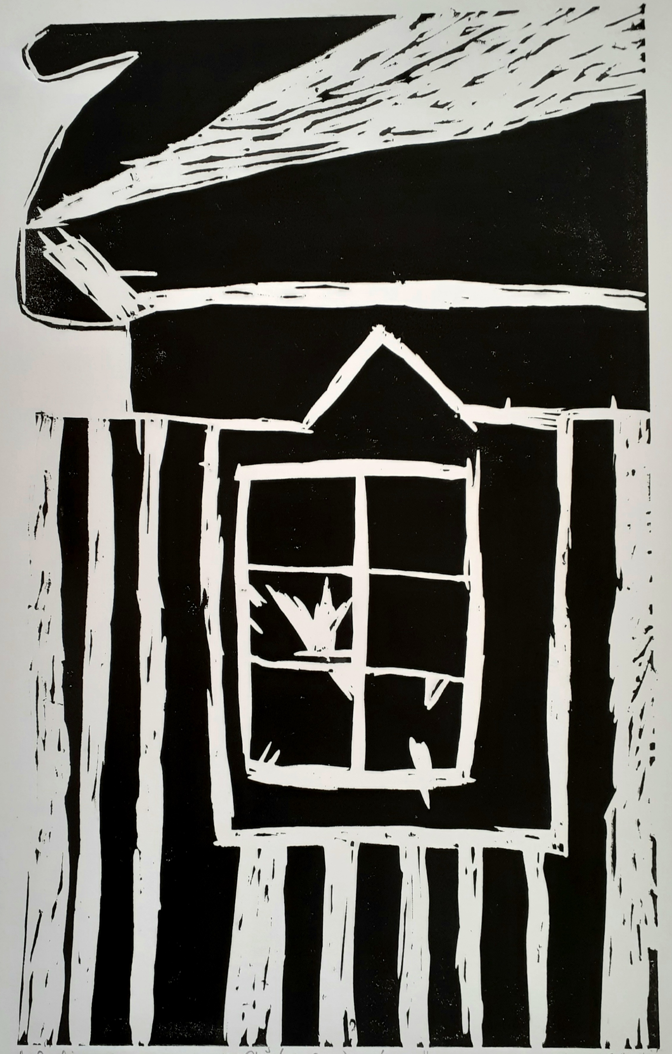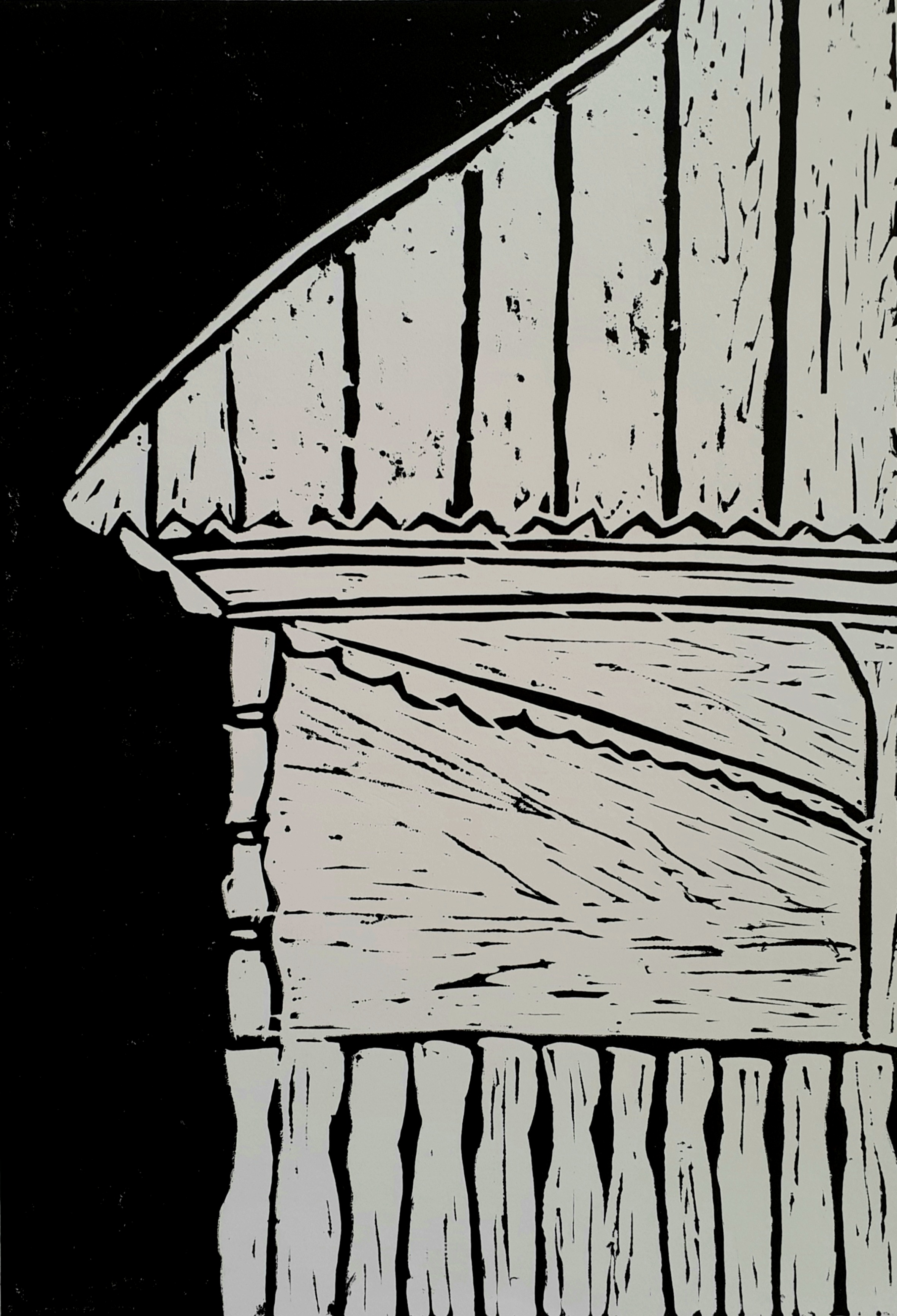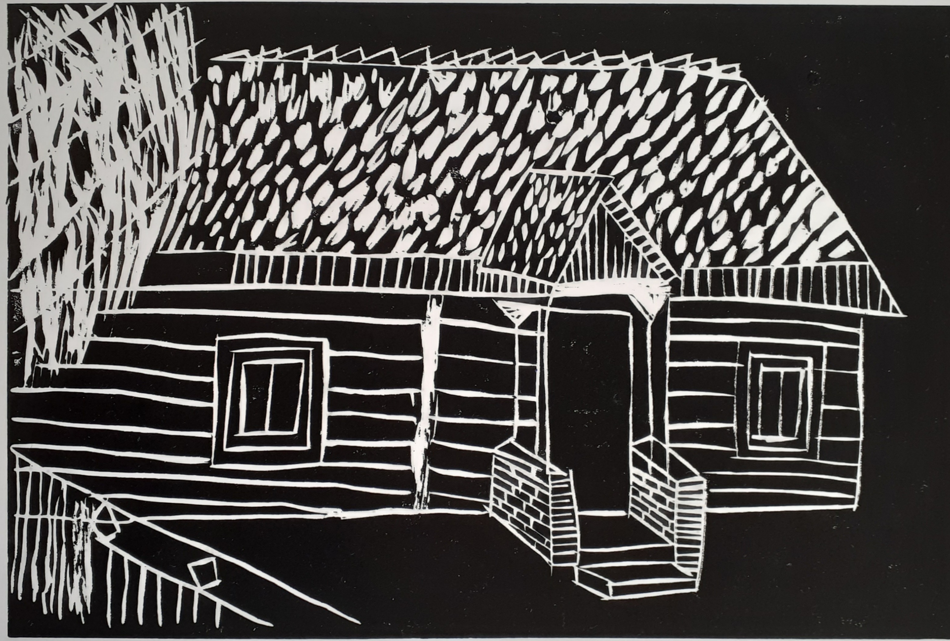 Napuštena drvena kuća koju sam crtala za ovaj linorez dio je tradicijske ruralne gradnje posavskoga kraja. Izvorna svrha ovakve gradnje bila je stanovanje. Danas se samo poneki odlučuju za stanovanje u ovim tradicionalnim kućicama, pa ih čak i rastavljaju i prenose na nove lokacije. Neki ih kupuju u dijelovima kako bi iz njih napravili namještaj ili ih iskoristili kao građevinski materijal. Budući da su dio naše kulturne baštine, pojedini u njima ipak prepoznaju turistički potencijal uključujući se u projekte njihove obnove.