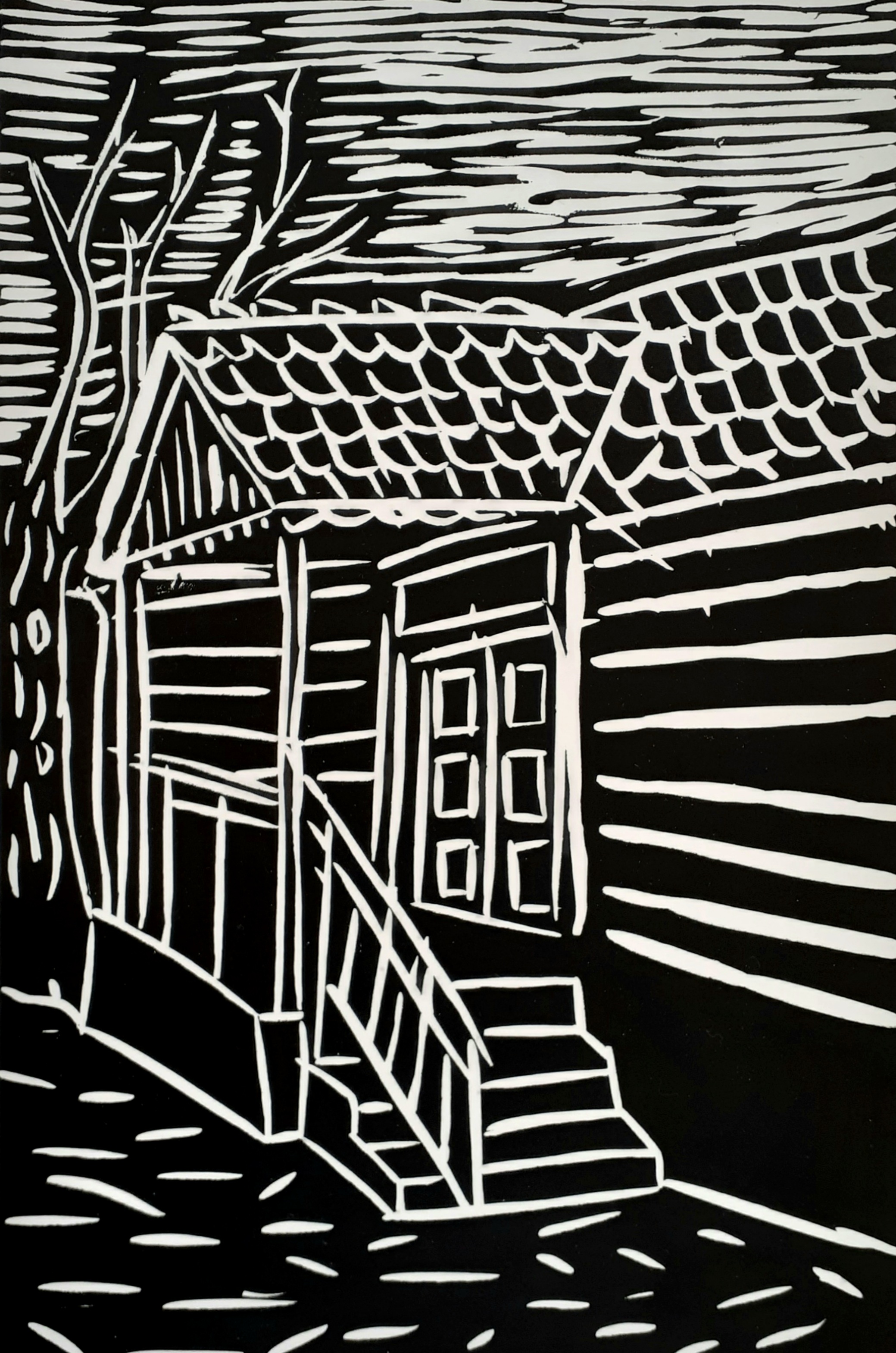 Posavska kuća. Napuštena drvena kuća koju sam crtala za ovaj linorez dio je tradicijske ruralne gradnje posavskoga kraja. Izvorna svrha ovakve gradnje bila je stanovanje, na što se danas se samo poneki odlučuju. Neki ih rastavljaju i prenose na nove lokacije, a drugi kupuju u dijelovima kako bi iz njih napravili namještaj. Kućice koju sam crtala za ovaj linorez danas više nema, barem ne na mjestu gdje je stajala. Možda je negdje prenesena i presložena, pa u njoj ljudi žive. Ili je srušena, pa su njene daske poslužile za nečiji pod. Iako sam ja u duši romantičar, vjerojatnija mi je ova druga opcija. U svakom slučaju, nadam se da negdje živi, makar nekim svojim promijenjenim životom.