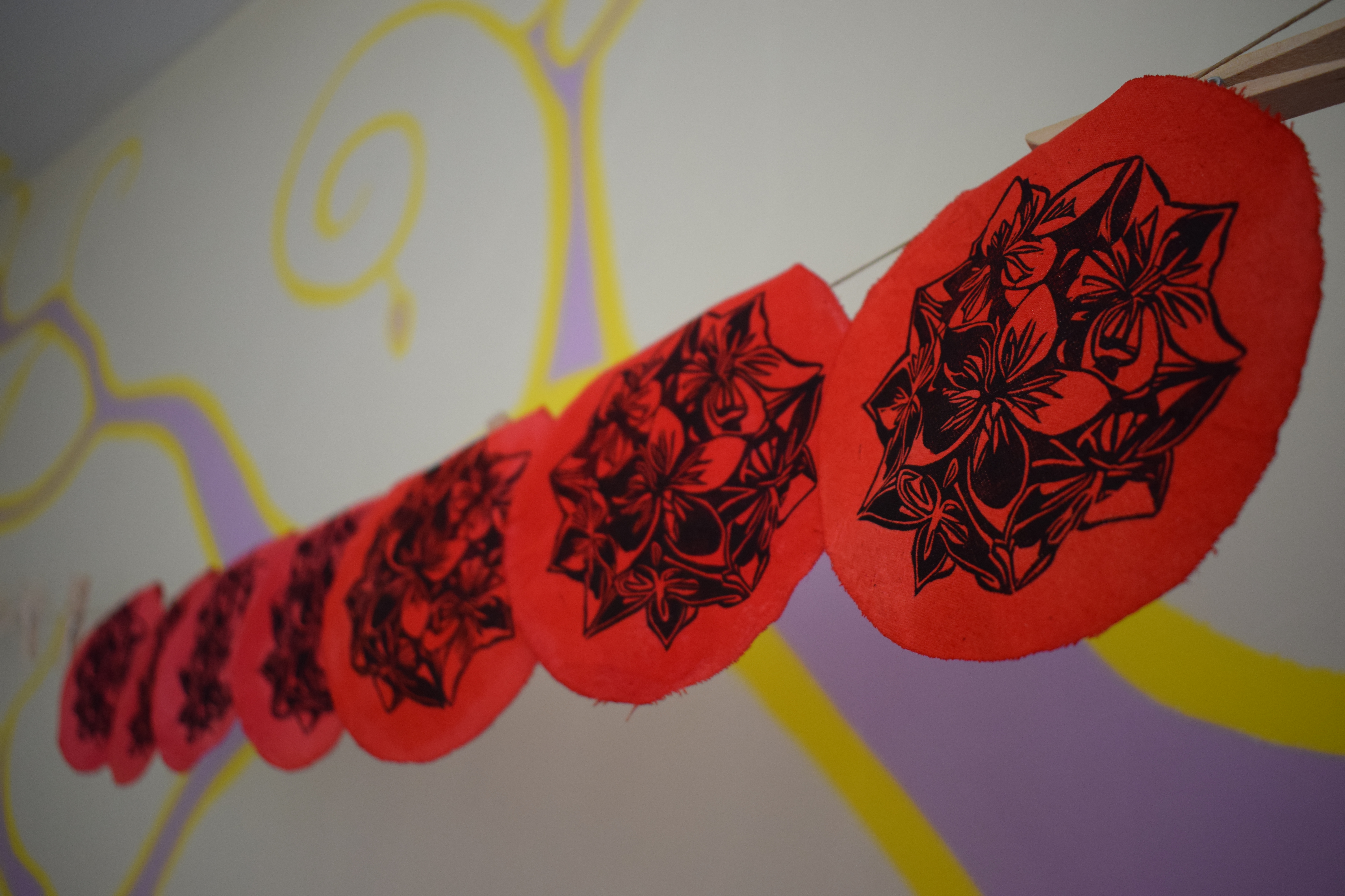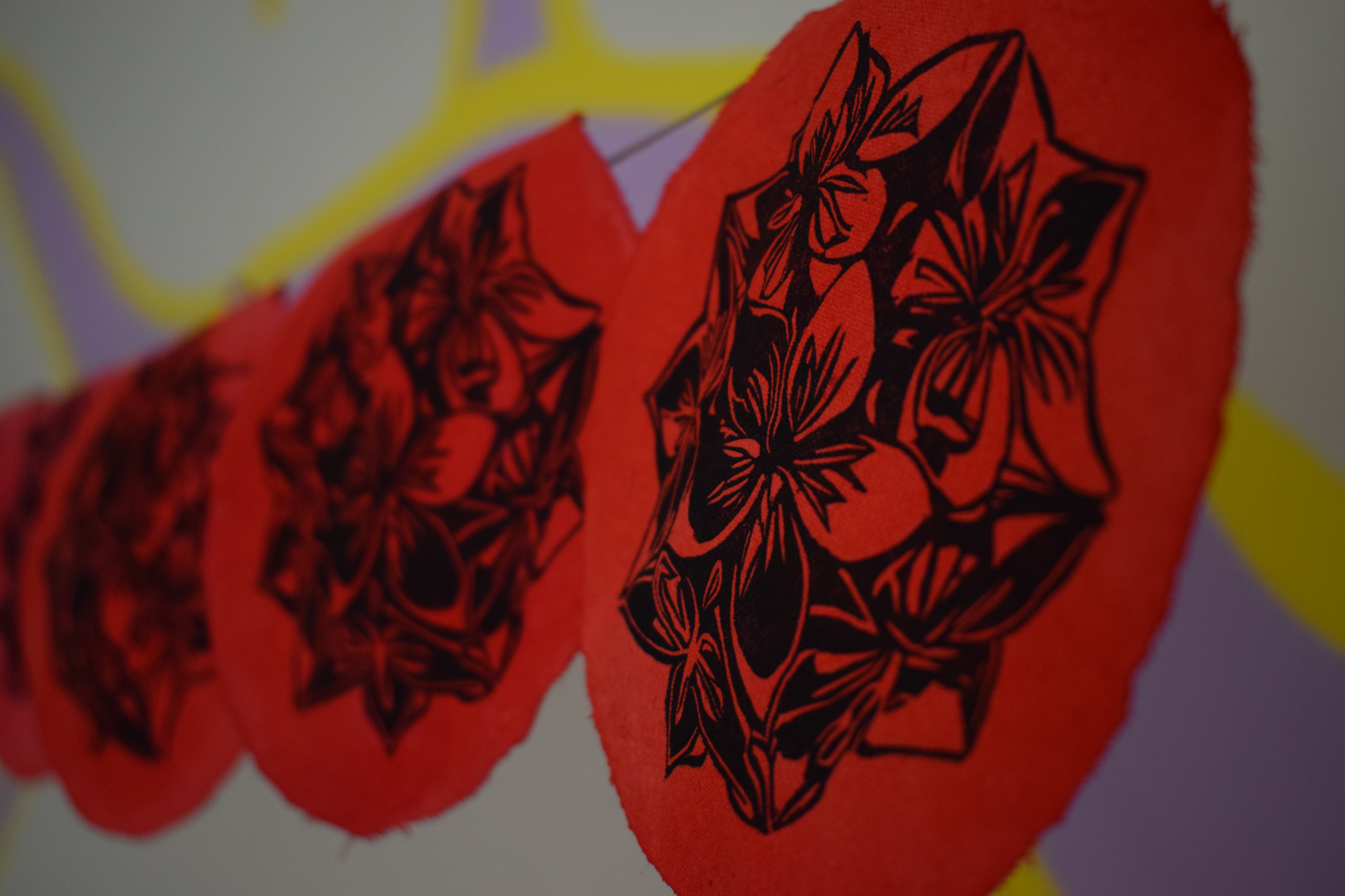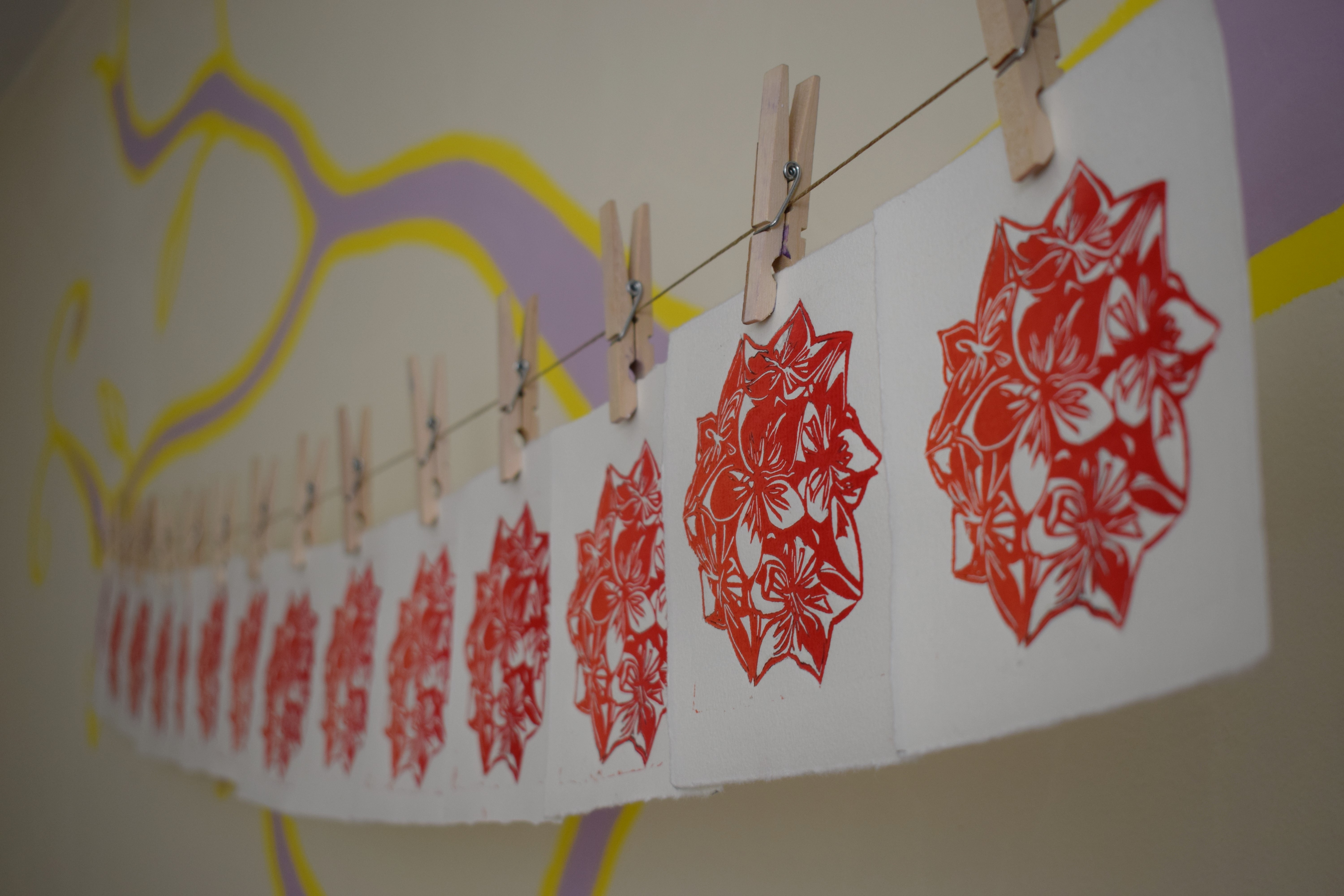 Ove sam ga zime, dakle, otisnula u crveno-narančastoj kombinaciji. Otiske sam objesila na sušenje u ateljeu.