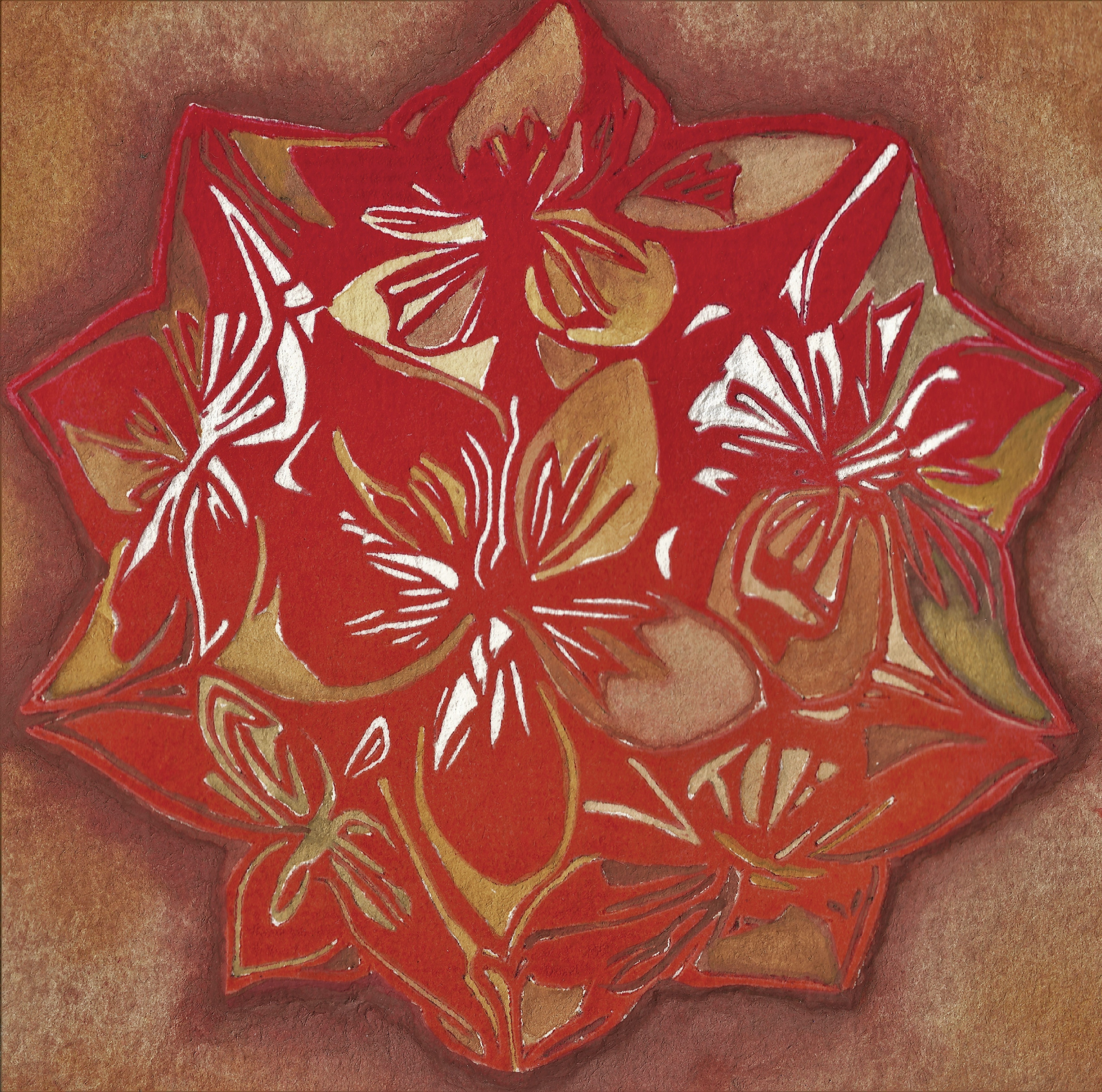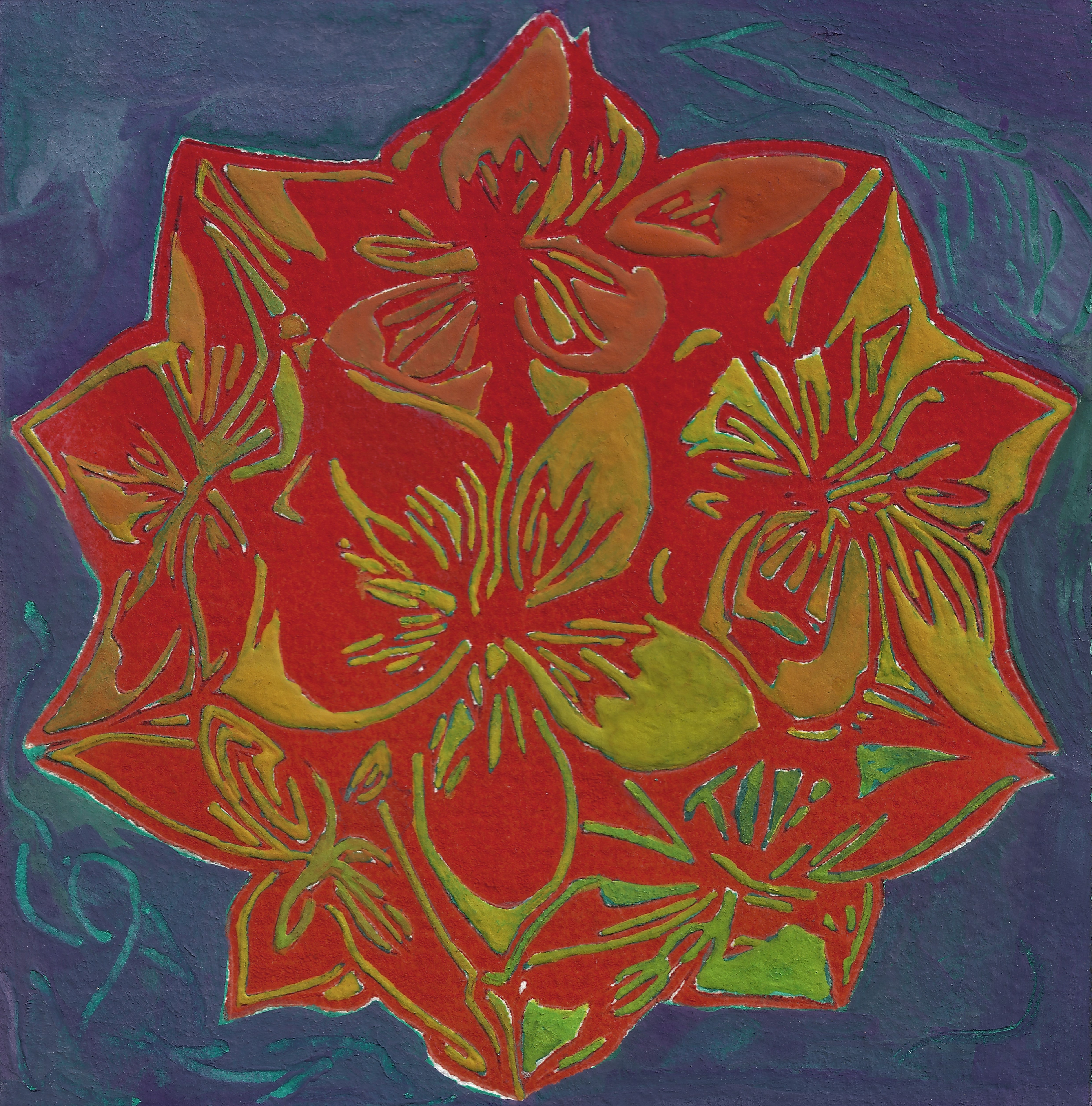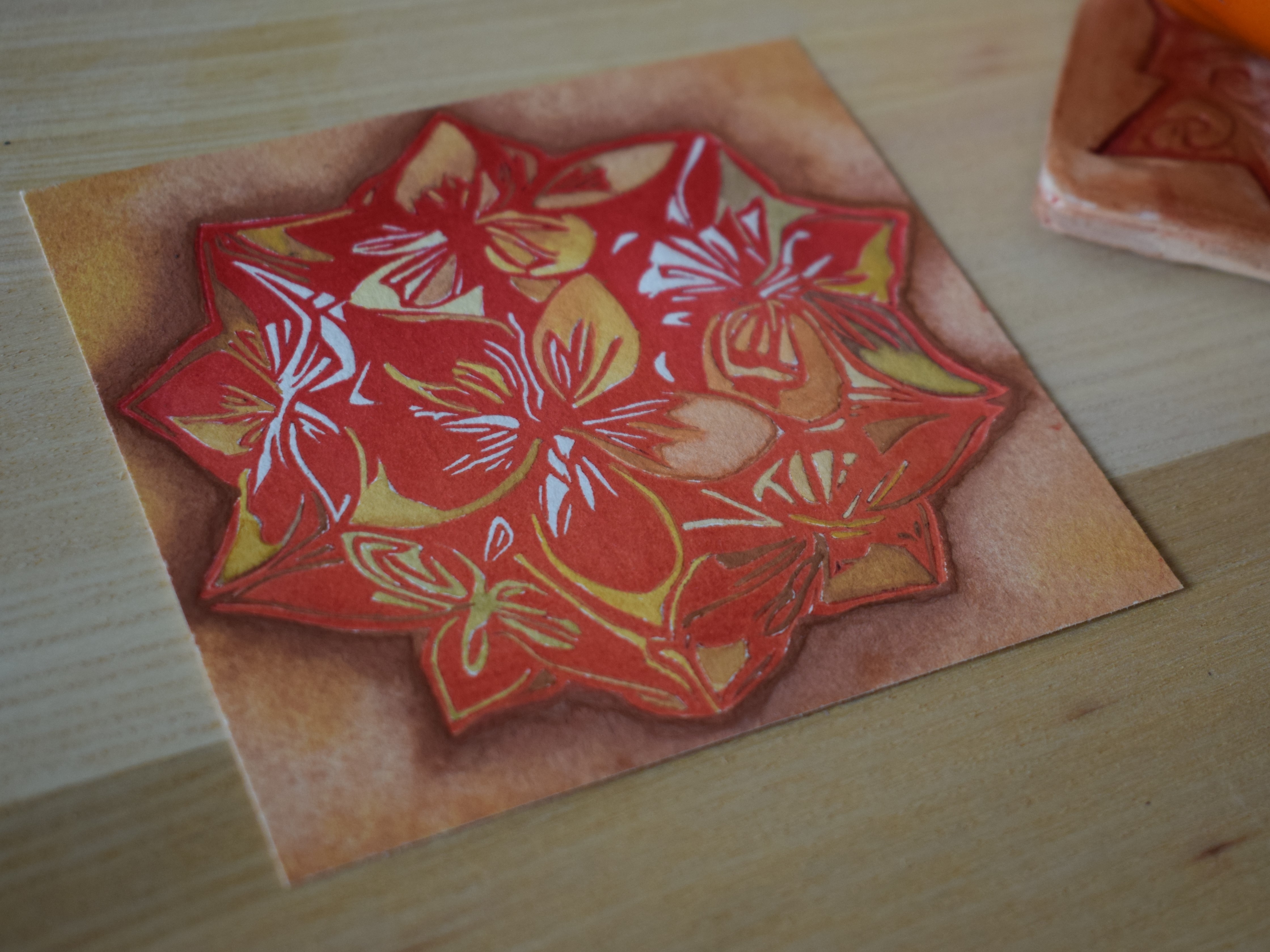 I tako je moj, davnih dana izdubljeni, Kusudama linorez ove godine otiskivanjem i oslikavanjem oživio u novim kombinacijama boja. I tko zna je li mu je tu kraj. Ako ploča izdrži, možda kroz koju godinu doživi i nove kolorističke eksperimente.