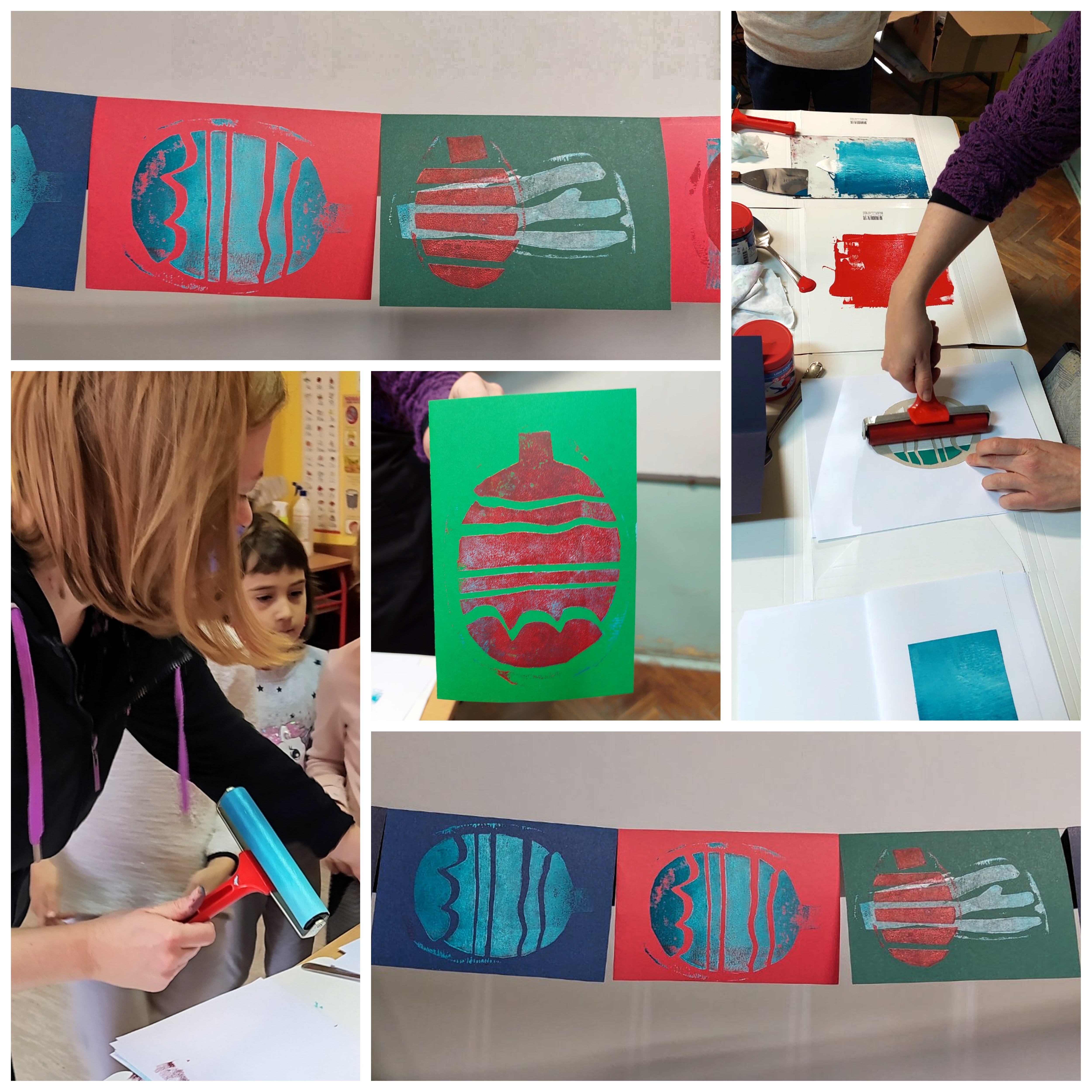 Okolnosti pandemije, koje su na toliko mjesta uzrokovale naručivanje raznih vrsta videa, uvelike su utjecale i na rad u školi. Tako smo i mi, po narudžbi, snimili proces izrade jednostavnih linoreza (ovaj put u službi božićnih ukrasa). Djeca su smislila na koji ćemo način fotografijama nabrojati sav potreban pribor. So proud.