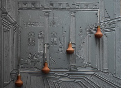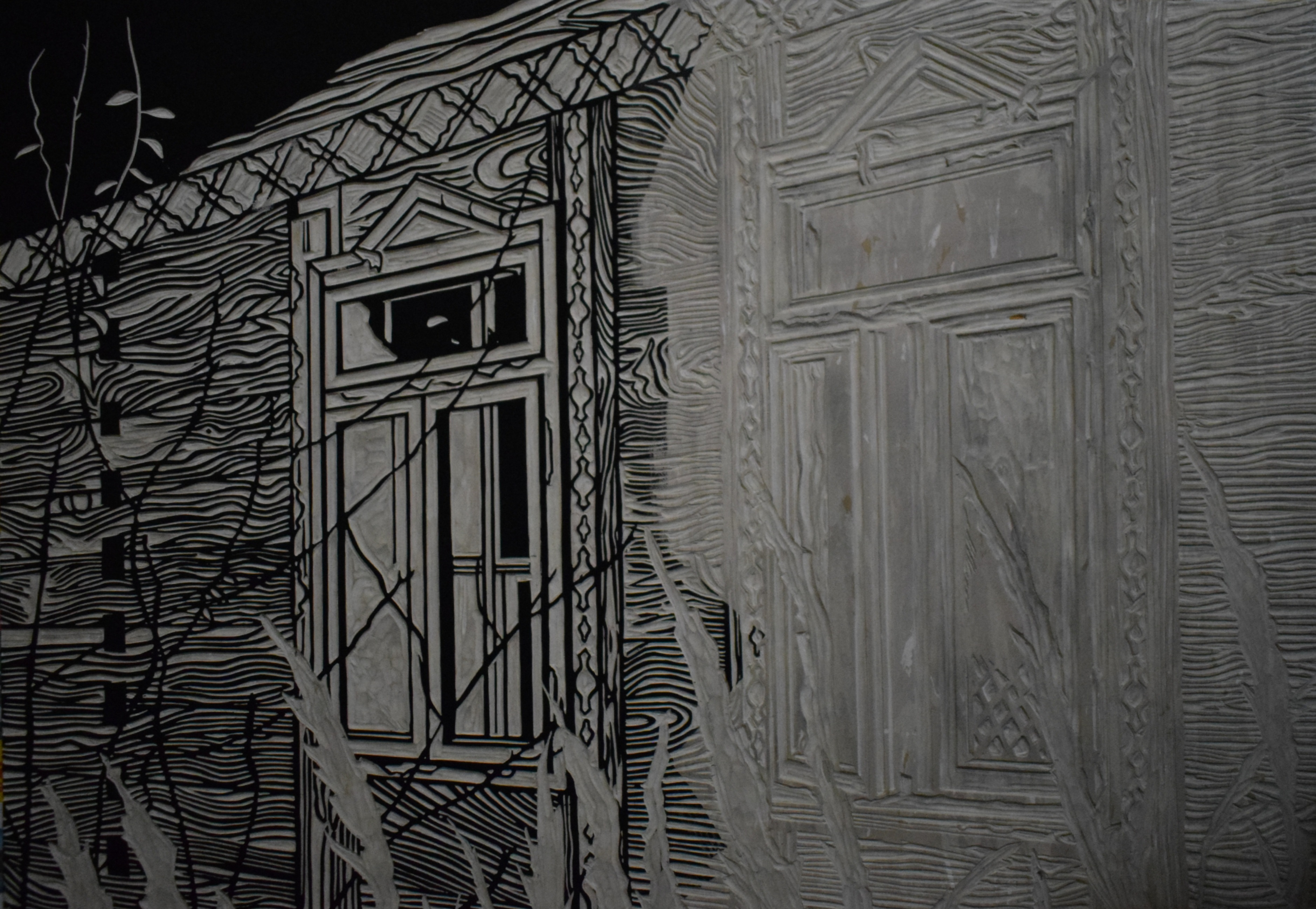 Od svog mi je raslinja bila najinteresantnija visoka trava ispred njenih prozora. Bila je čudne blijedo žućkaste boje, nalik na klasje. Radi kontrasta sa tamnom kućom, trava se činila gotovo bijela. Odlučila sam dijelove ploče koje predstavljaju neobičnu travu izdubiti kao negativnu formu u prvom planu.
