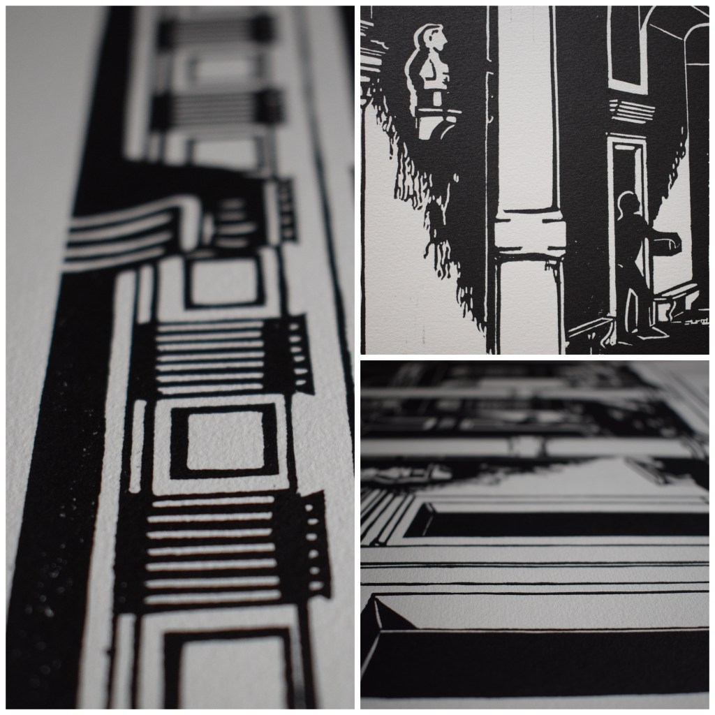 Gore je još nekoliko detalja gotove grafike, za kraj. Meni je možda omiljeni ovaj gore desno. Sviđa mi se kako bista i čuvar muzeja gledaju u istom smjeru, kao da su već dugo stanari iste kuće.