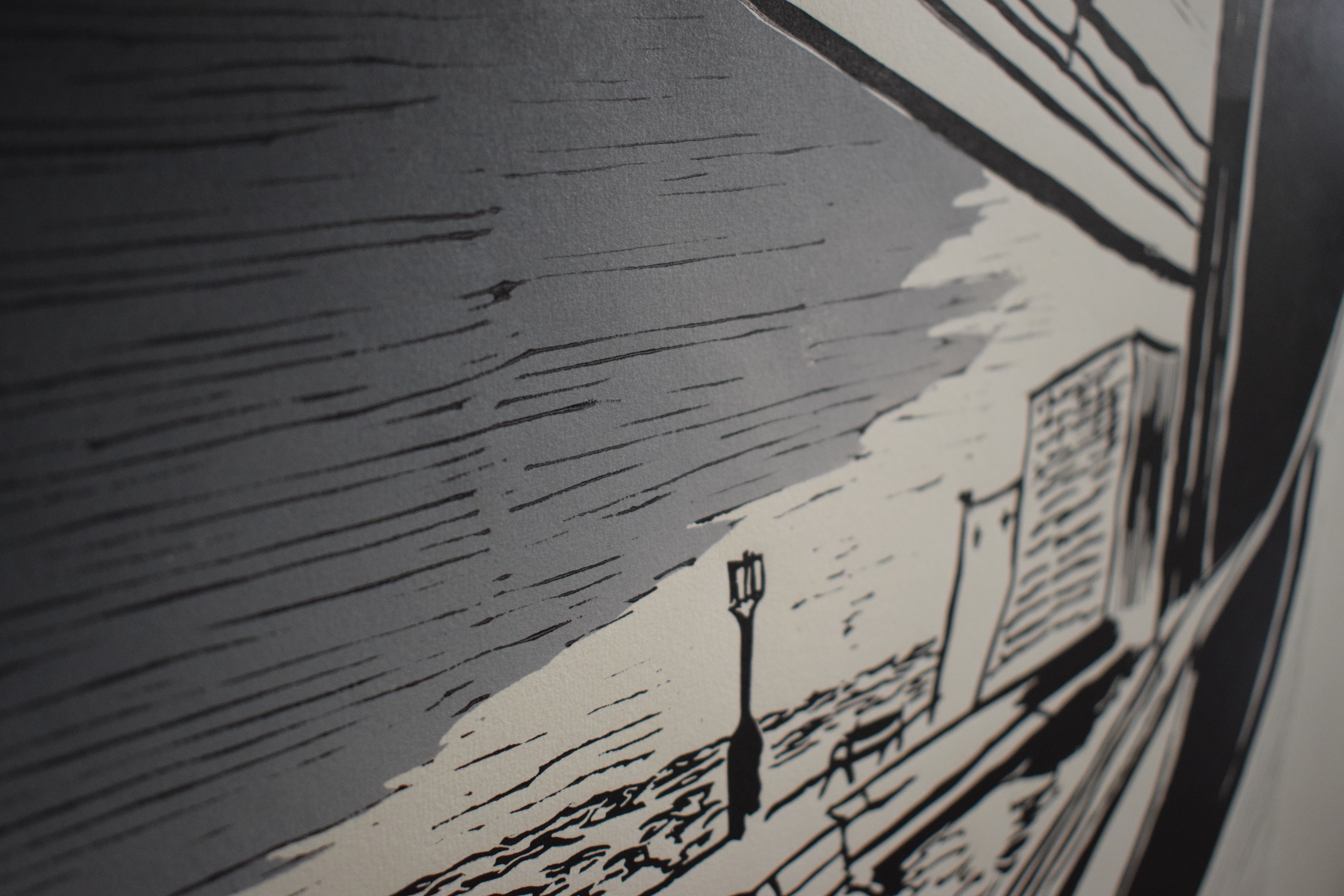 Detalj linoreza Bar Luce je na plakatu izložbe, a više o procesu nastanka same grafike pročitajte ovdje.