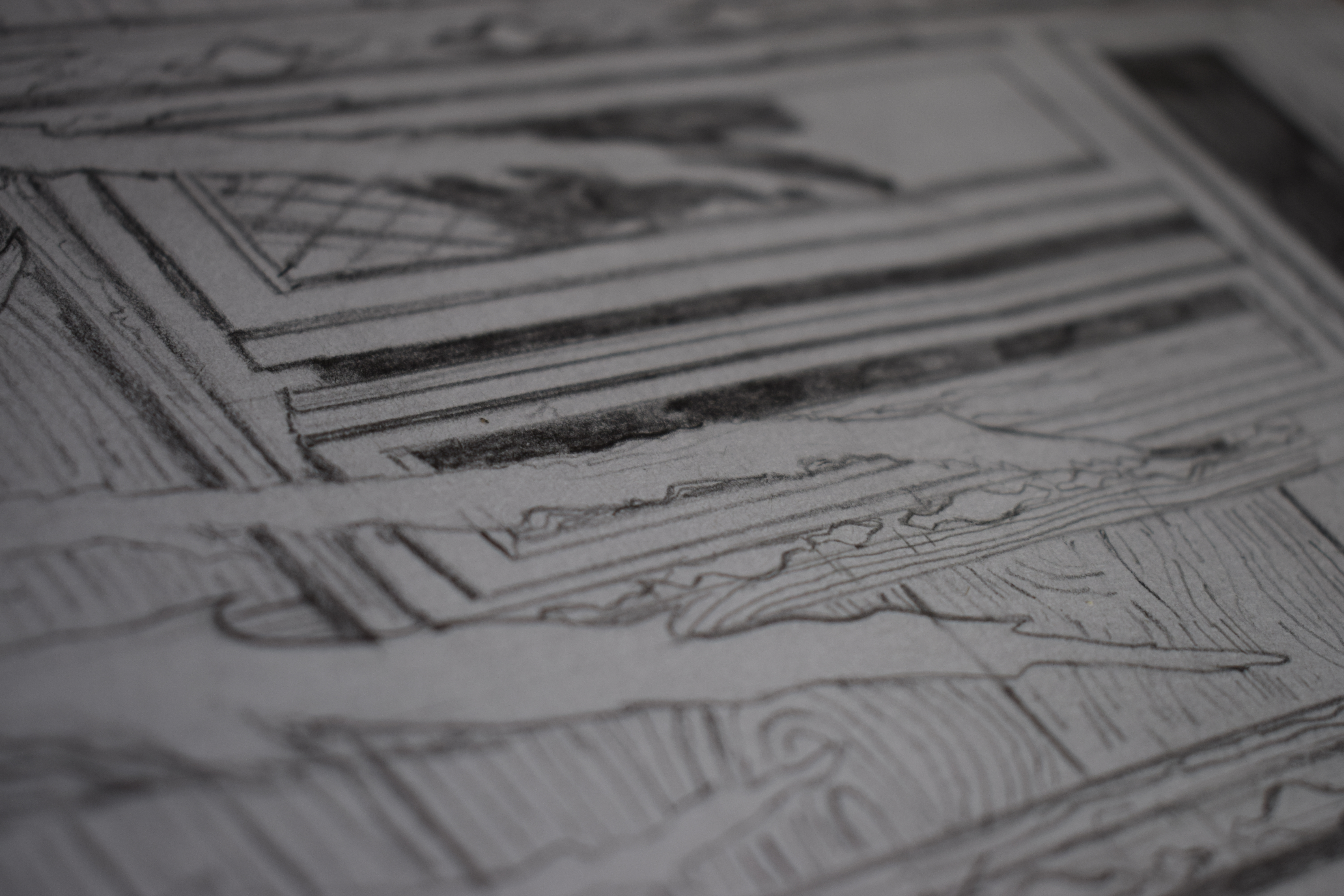 Ipak sam, ovog puta, malo promijenila svoj proces. Obično su moje studije uključivale i odluku koje ću dijelove linoleuma ostaviti da budu crni u otisku, a koje ću izdubiti, pa će postati bijeli. Ovaj put je skica ostala u olovci, a o tome što će biti crno, a što bijelo, odlučivala sam tijekom dubljenja. Cijeli mi je proces dubljenja zbog toga bio još više uzbudljiv. Ali i duži, jer sam provodila dosta vremena provjeravajući kako će ploča izgledati. Te sam male provjere radila pomoću ovakvih frotaža.