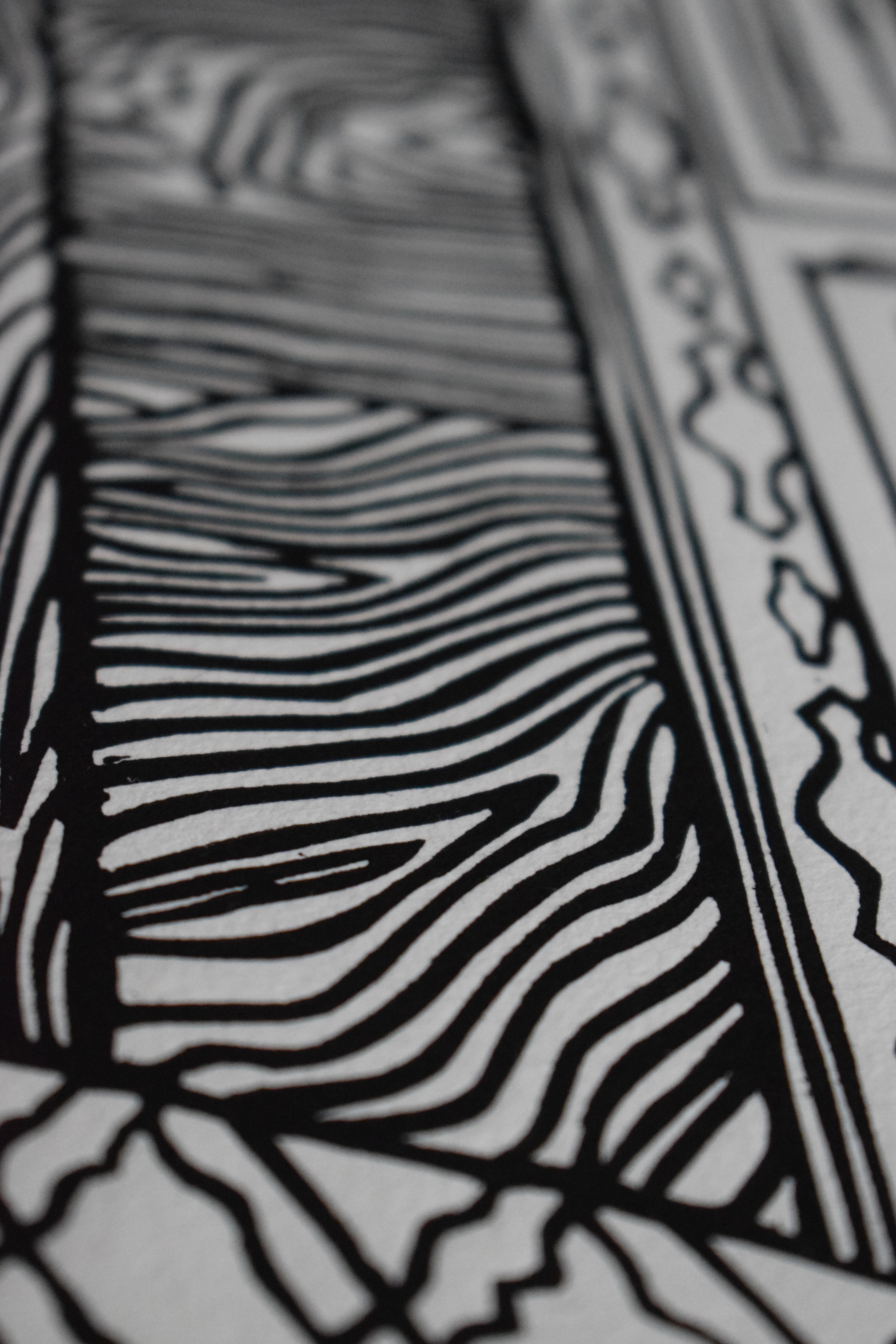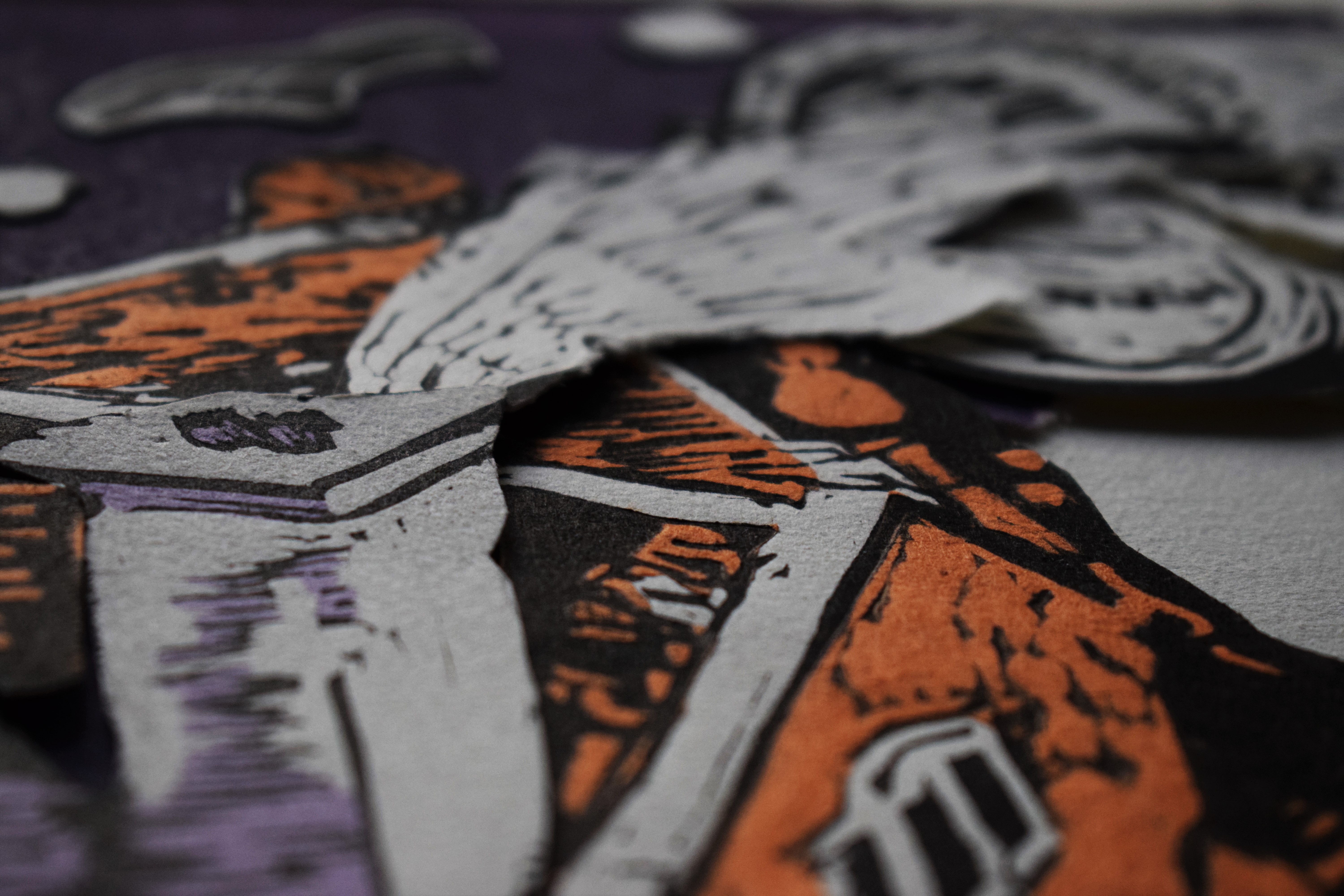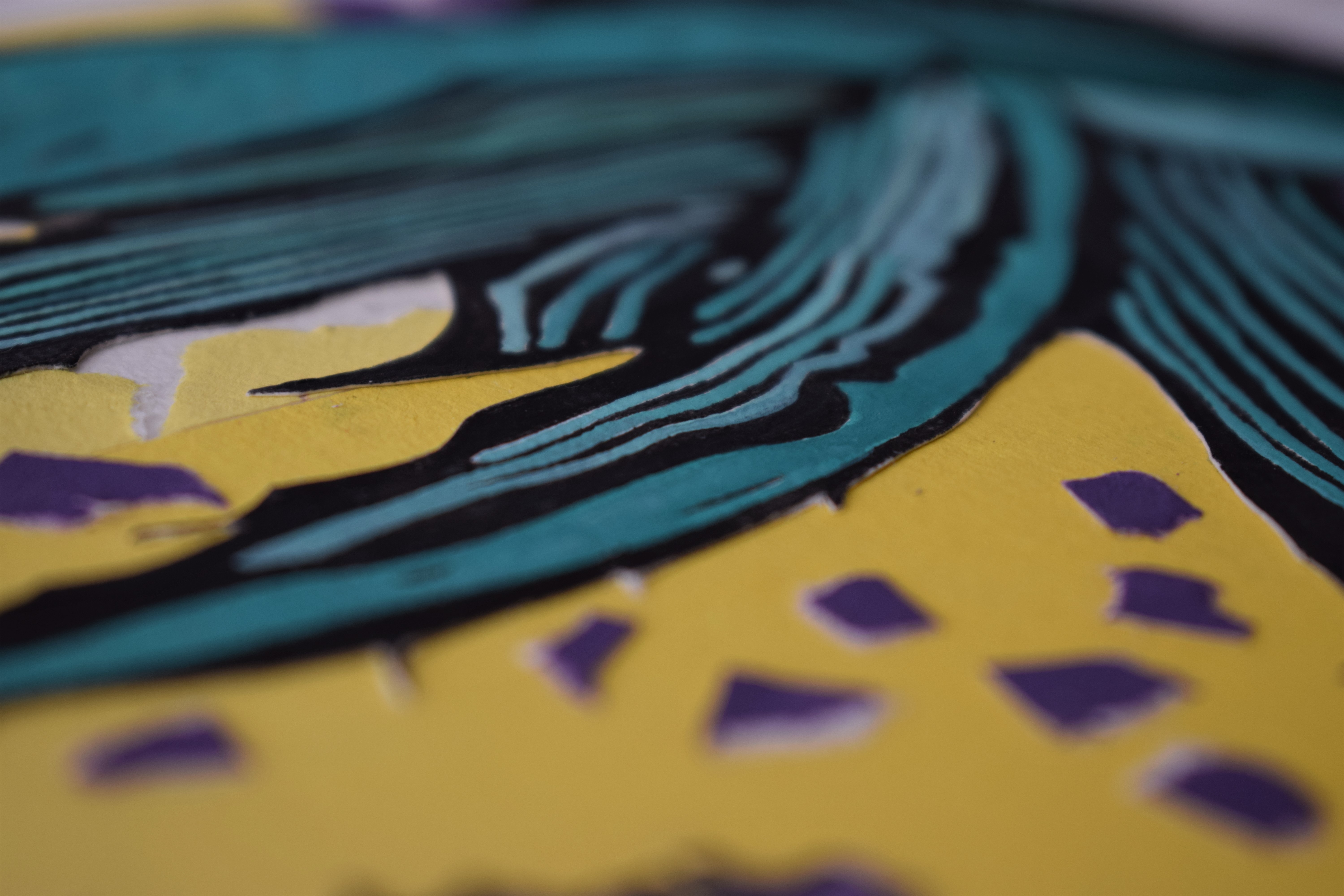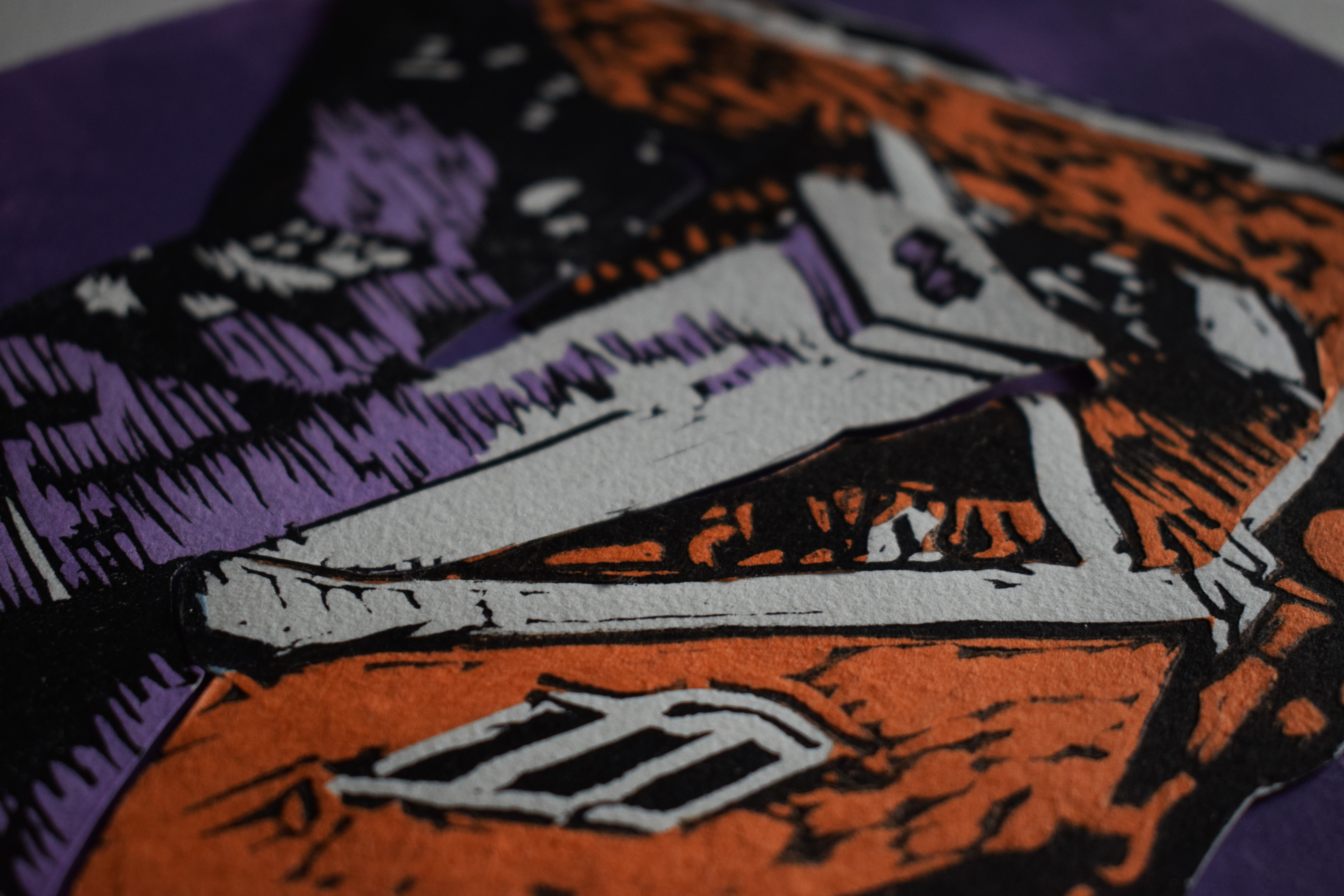 Htjela sam da moje linije koje prikazuju teksturu budu izražajne. Kako sam napredovala u dubljenju ploče linoleuma, zaključila sam da moj interes za teksturu, koji se pojavio pri izradi prošlog linoreza, raste i razvija se.