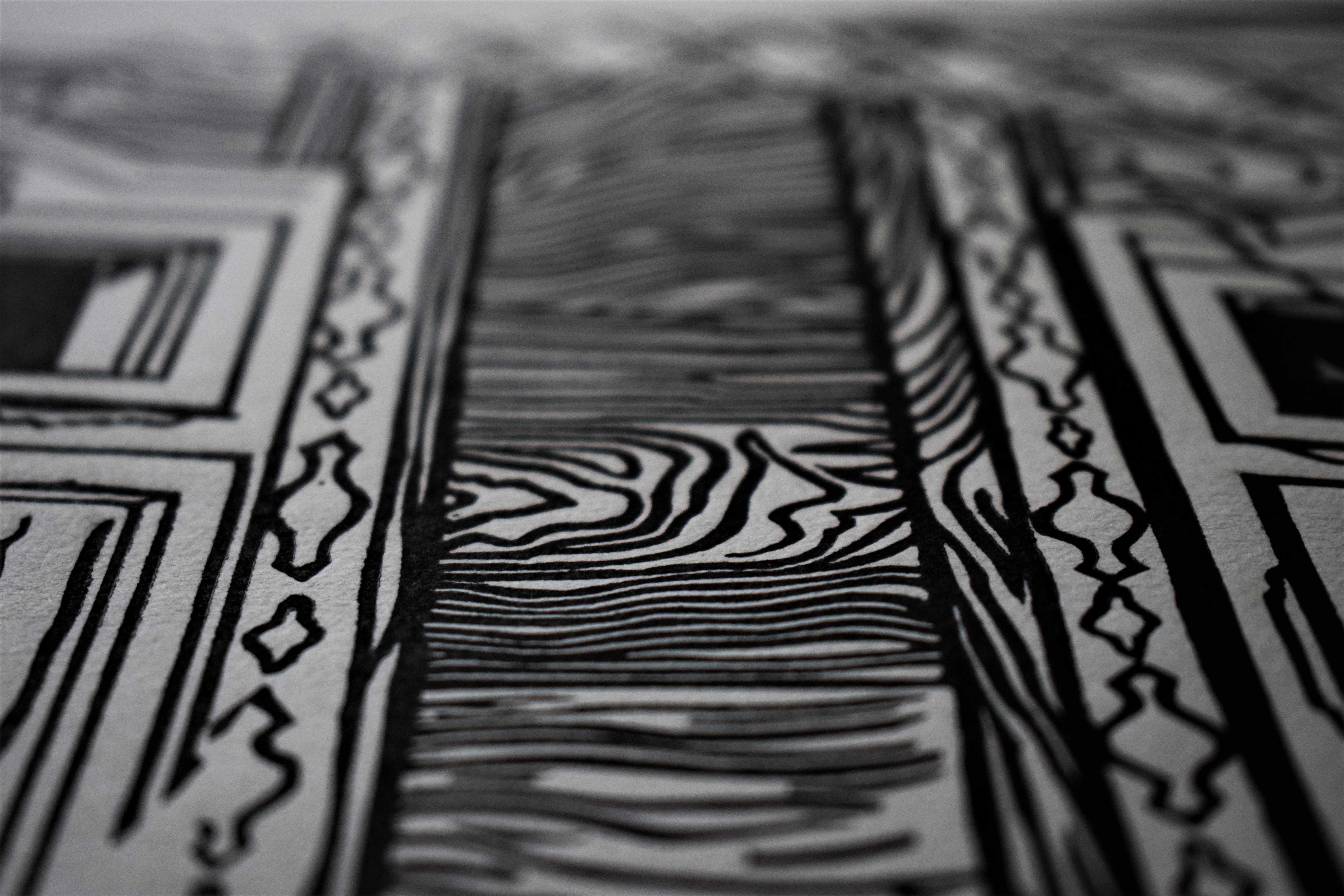 Dok sam ove izrezbarene detalje crtala na pripremnoj skici (a i kasnije dugotrajno dubila u ploči linoleuma), primijetila sam da, osim što raste moj interes za teksturu, očito raste i moj interes za ritam.