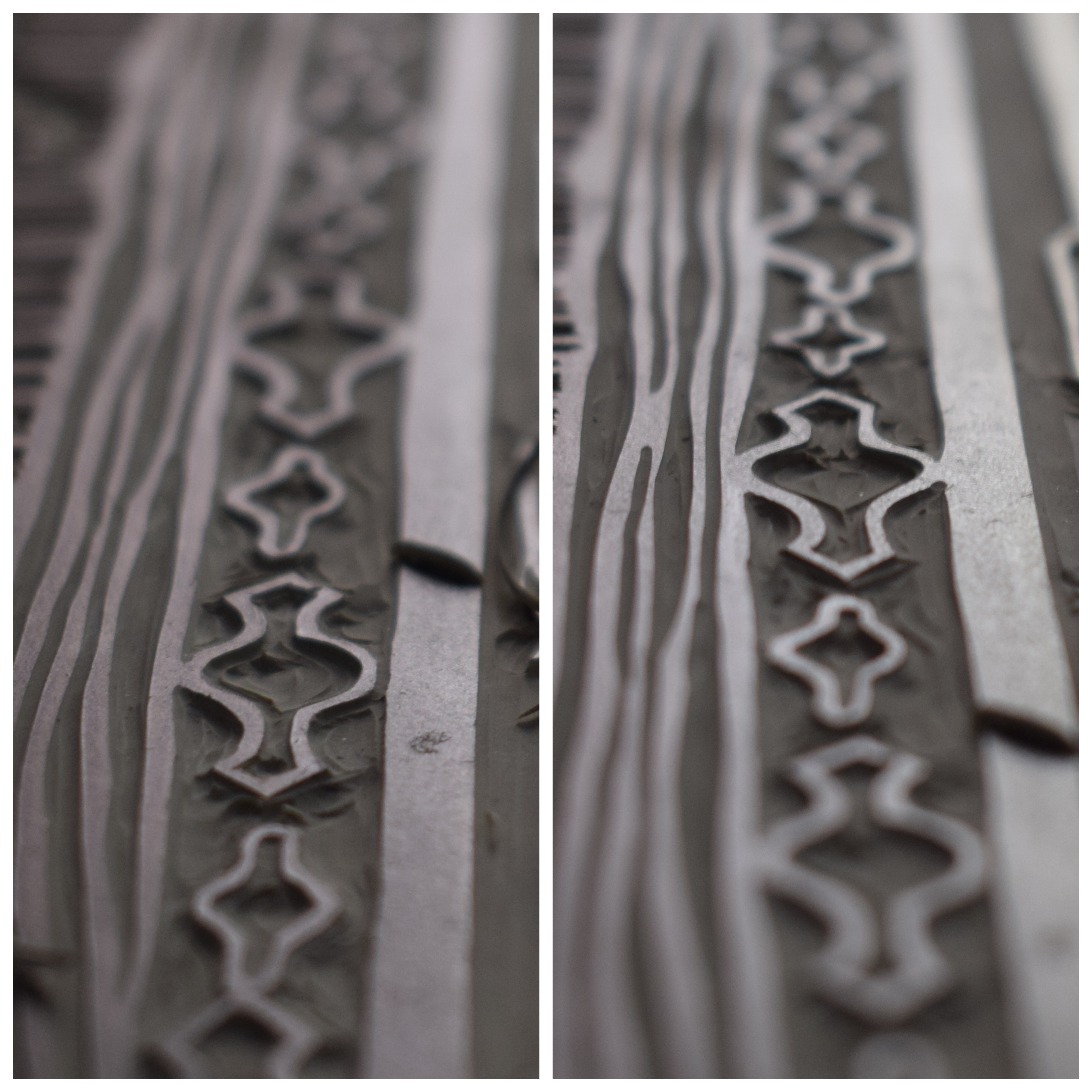 Evo još jednom istog dijela ploče, ovaj put u usporedbi sa otiskom. Iako su linije izgledale prilično oštro na izdubljenoj ploči, nisam znala koliko će to biti čitljivo u samom otisku. No, na kraju sam zadovoljna kako je ispalo.