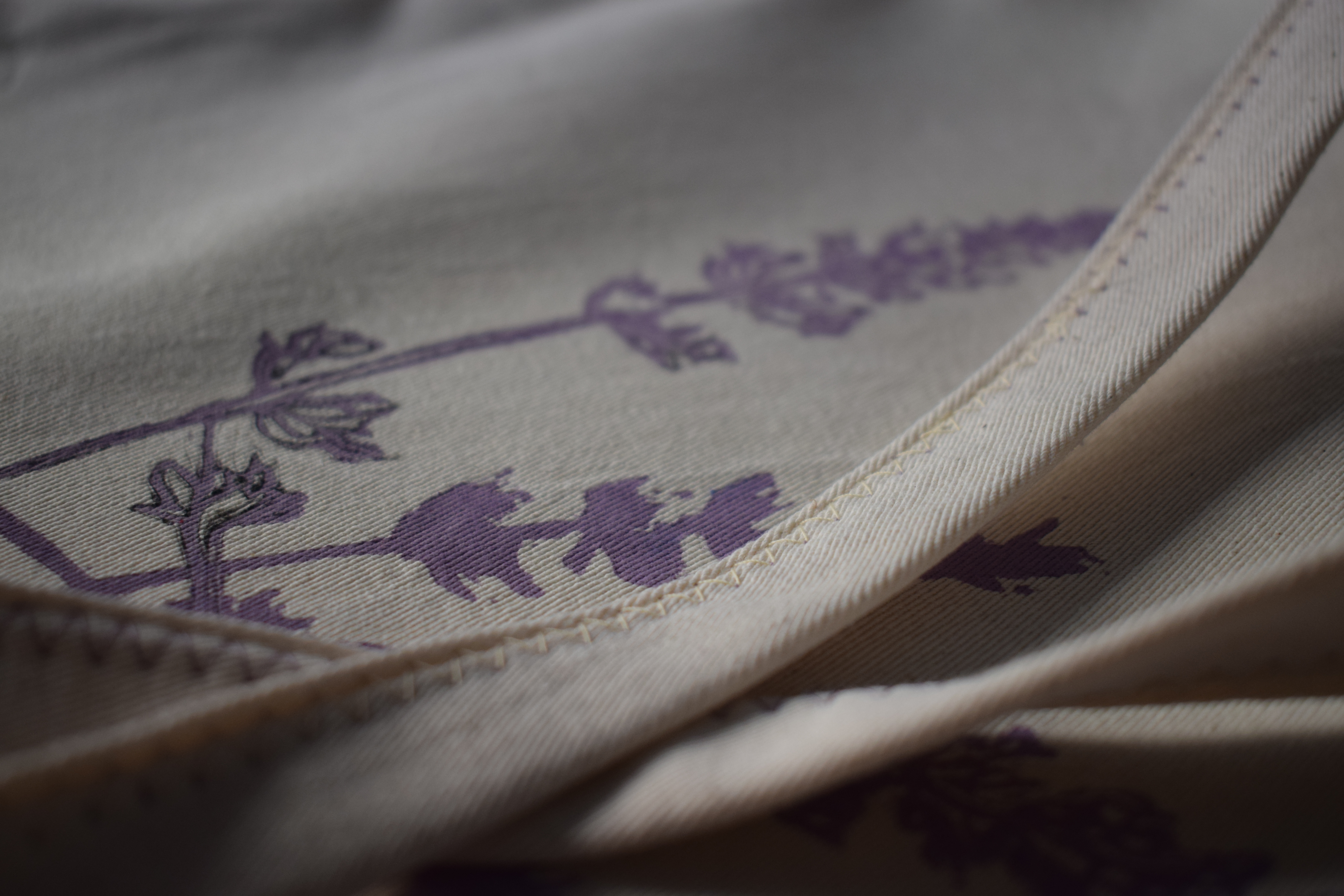 Evo otiska linoreza na platno. Prije nego li što sam se uhvatila šivanja, odlučila sam gotovom otisku dodati par detalja ručnim oslikavanjem. Koristila sam boju za tekstil.