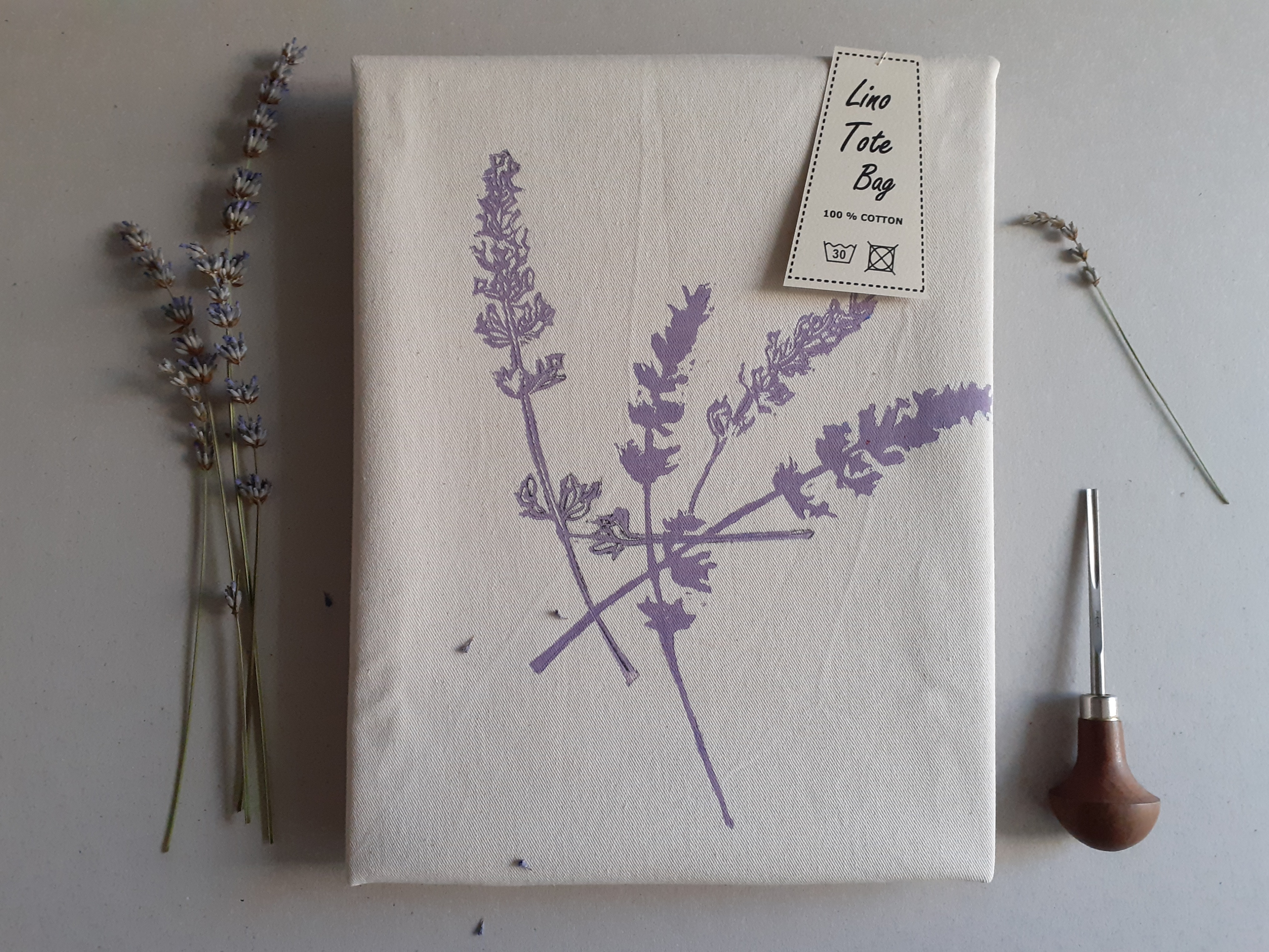 Davno sam radila te linoreze. Jedan 2013., a drugi 2016. godine. Zapravo, kad gledam unatrag, zaključujem kako se motiv ljubičastog cvijeta intenzivnog mirisa s vremena na vrijeme uvijek iznova pojavljivao i u mojim linorezima i u dizajnu torbi. A ove je godine motiv lavande preuzeo čitavo ljeto.