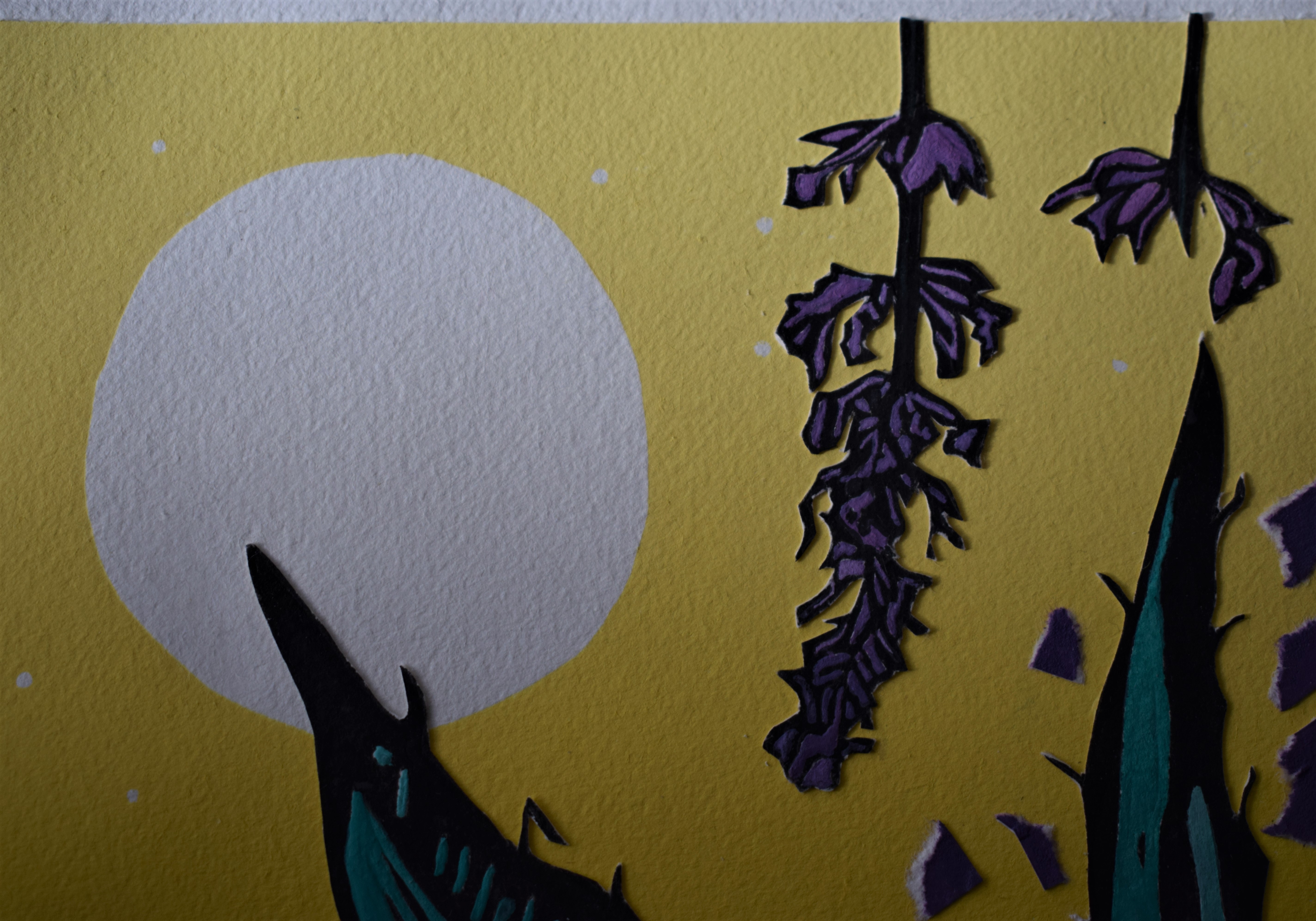 Ovdje sam, za razliku od prethodnog kolaža, najprije gvašem kolorirala otisak agave. On je također rezultat iskorištavanja viška boje pri nekom ranijem otiskivanju.