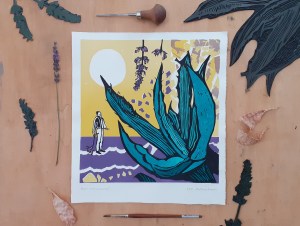Sljedeći je kolaž, osim lavande, dobio i agavu. Agava je još jedan motiv kojem se često vraćam. Manje u grafikama, ali zato puno više pri dizajniranju torbi.