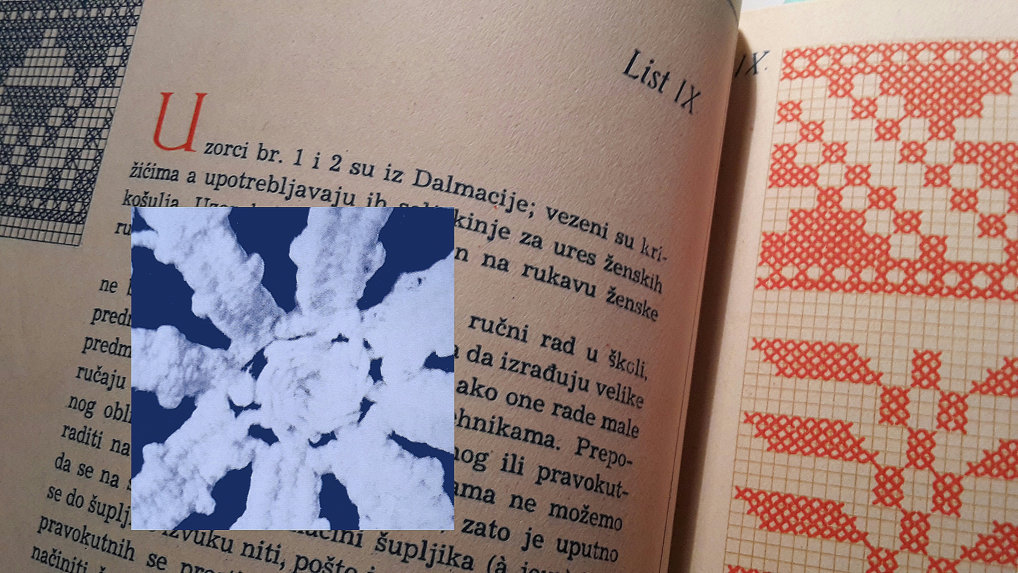 Trebali smo koristiti etno motive. Dobra prilika za izradu redefinicije narodnog veza. A već sam neko vrijeme i sretni vlasnik bakine knjižice o vezovima raznih krajeva Hrvatske, pa sam išla pogledati što u njemu sve ima…