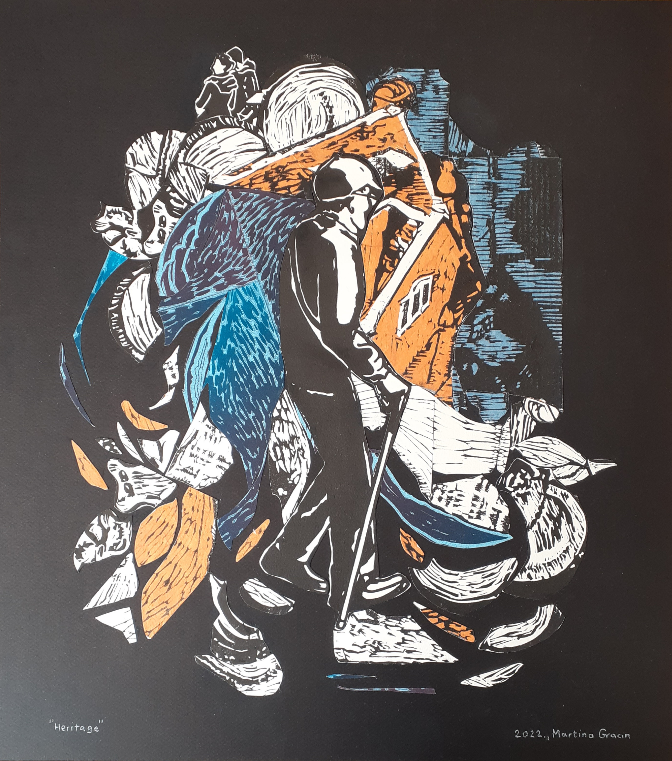 Ne dajući potpuni pregled svih radova koji su bili na izložbi, ovaj post završavam s radom Heritage. O tehničkim dijelovima ovog rada možete nešto više pročitati ovdje. Napravila sam ga 2022. godine, relativno rano u odnosu na ukupno vrijeme stvaranja cijelog ovog novog ciklusa radova. Pa ipak, Heritage nekako naglašava nit koja se provlači kroz sve njih. Bez obzira na sve naše individualnosti, osobne napore i specifične okolnosti naših životnih puteva, svi smo mi oblikovani našim obiteljskim okruženjima, podnebljima u kojima je stvarana povijest naših predaka te običajnim i materijalnim nasljeđem u koje smo se rodili.