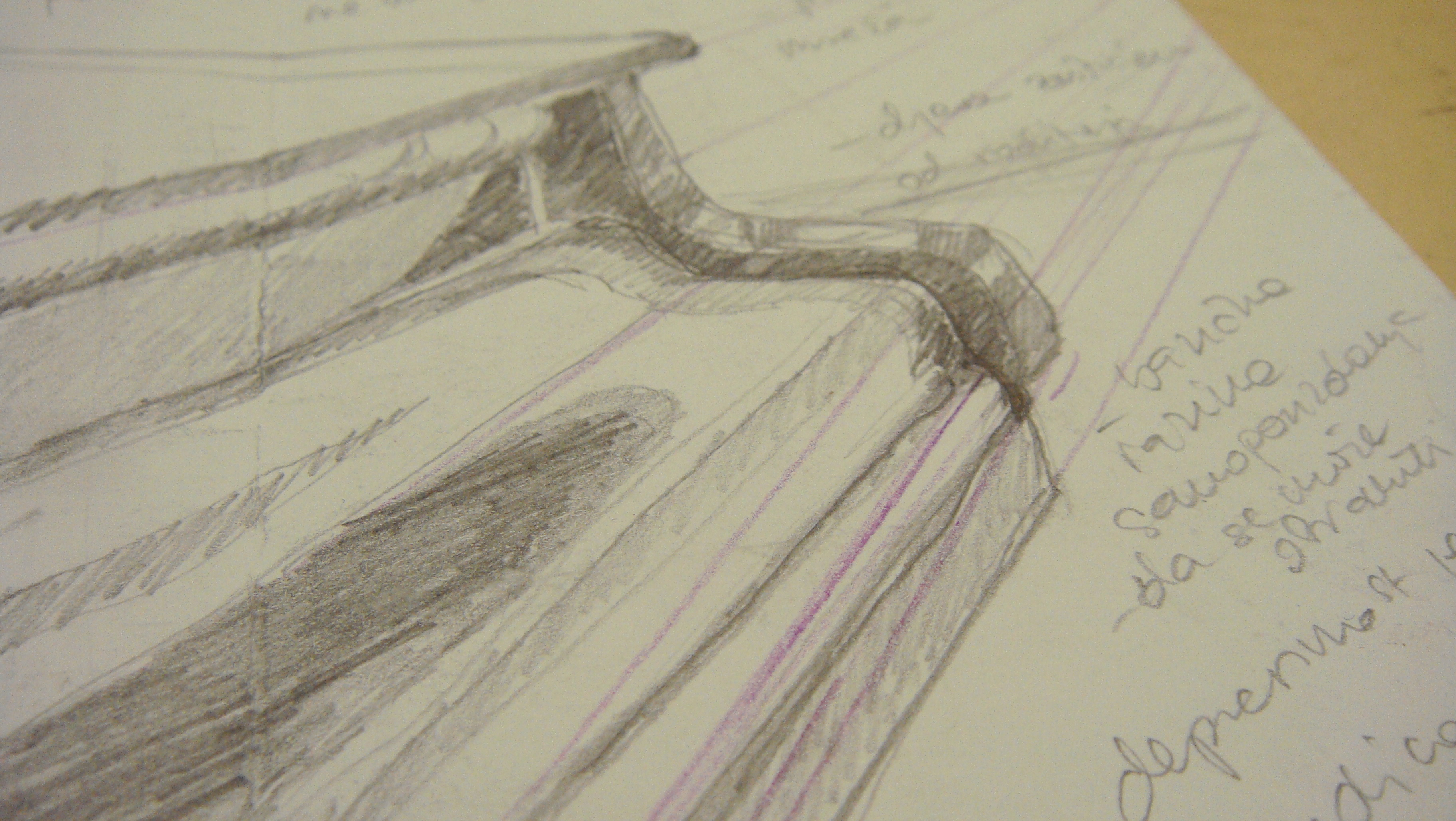 Skica je razveselila moju majku, arhitekticu. Divno…čiste plohe, čiste linije…Ovo je nešto drugačije nego inače. A otac se samo obradovao jer se na mojim radovima konačno pojavljuju ljudi. Doduše, kao siluete ili s leđa, ali ipak…