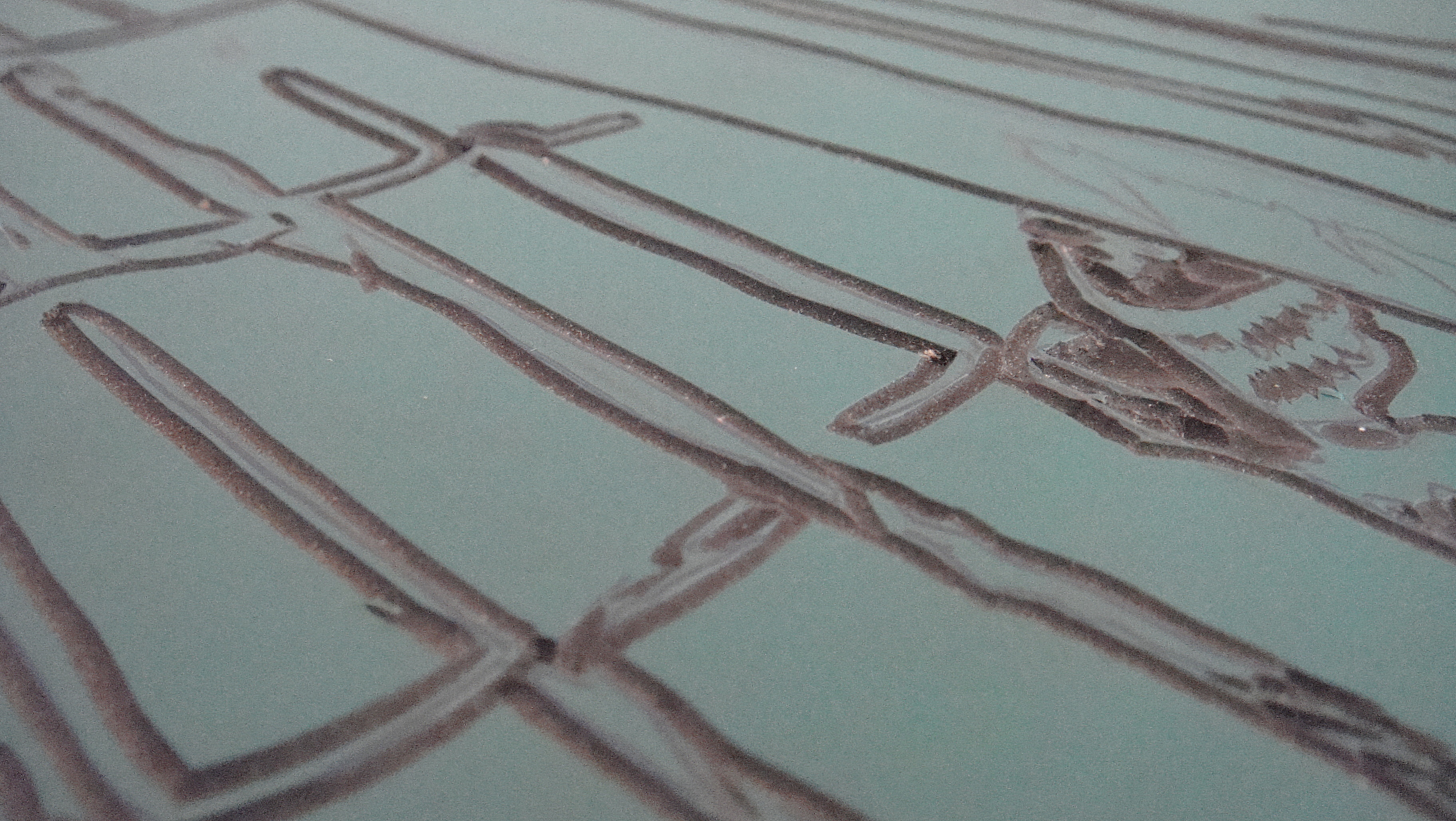 Započela sam novi linorez. Skica je napravljena ove zime u centru Zagreba. Bili smona nekom predavanju. Evo sam je se uhvatila… Puno se ovih dana čuju klavijature na radiju, umro Ray Manzarek.