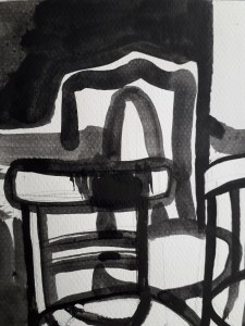In the process of sketching out the chairs, the first step was capturing the curious rhythm and interplay of shadows through a rhythmical interchange of black and white surfaces.
