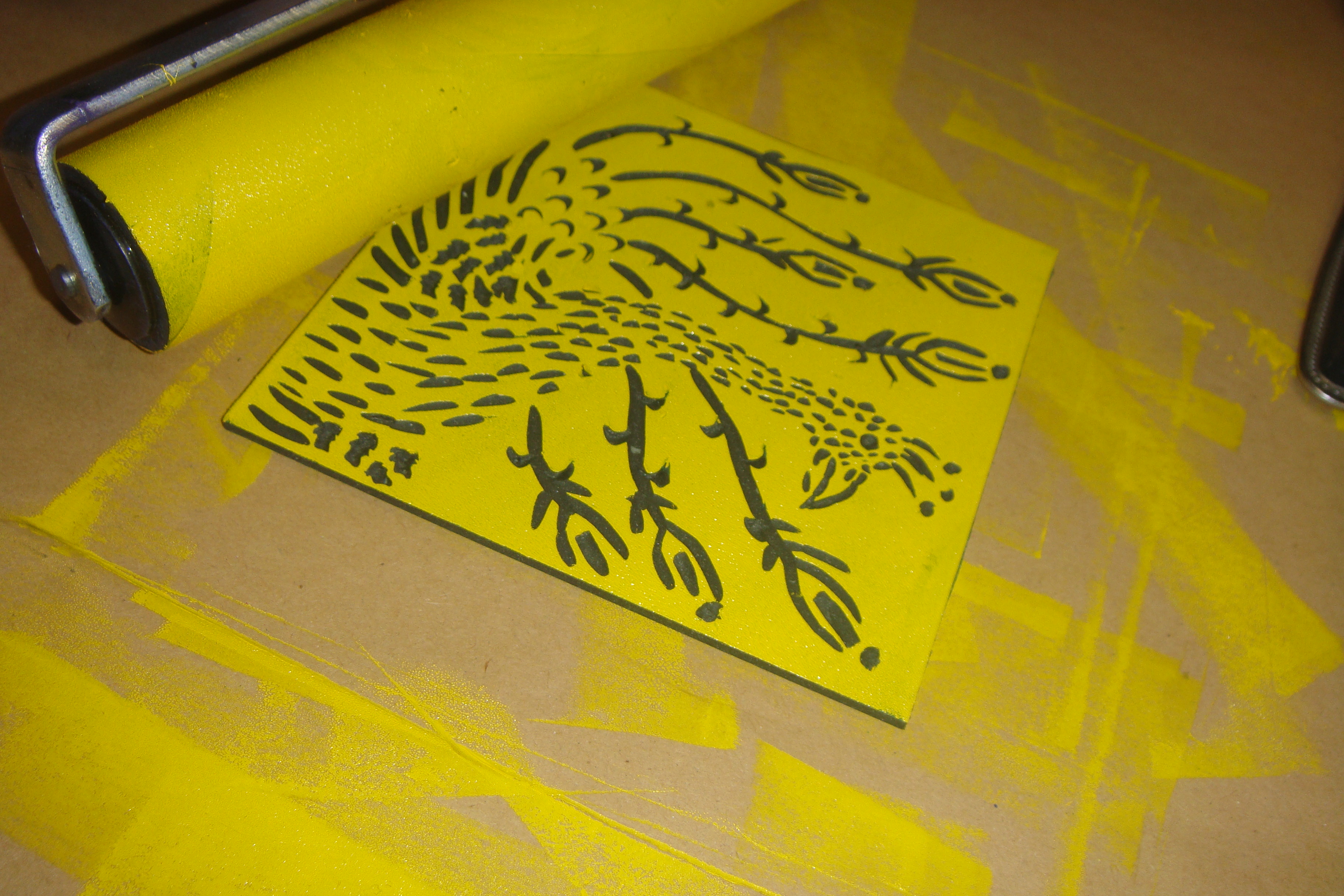 A proces stvaranja otiska započinje nanošenje grafičke boje na glatku površinu. Za ovu sam priliku koristila grafičke boje na bazi vode. One se mogu nabaviti ovdje.
